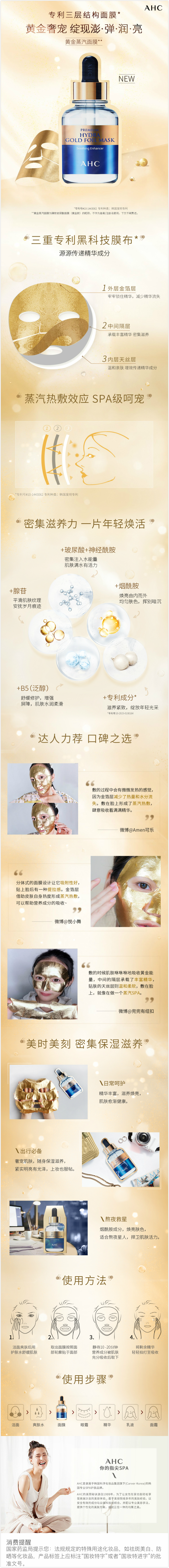 商品名称:AHC/爱和纯 24k黄金锡纸蒸汽面膜保湿b5玻尿酸 5片装