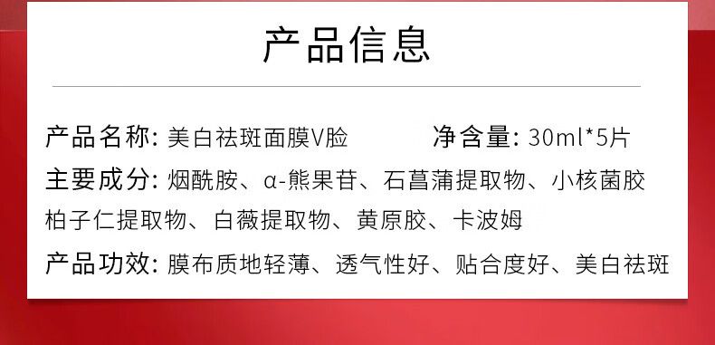 商品名称:LBX 祛斑面膜 5片 烟酰胺断黑