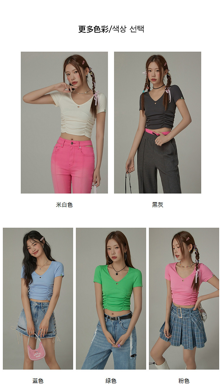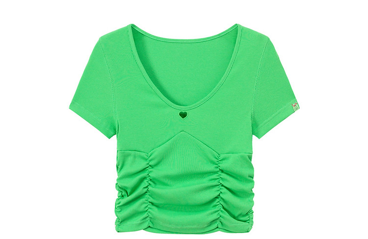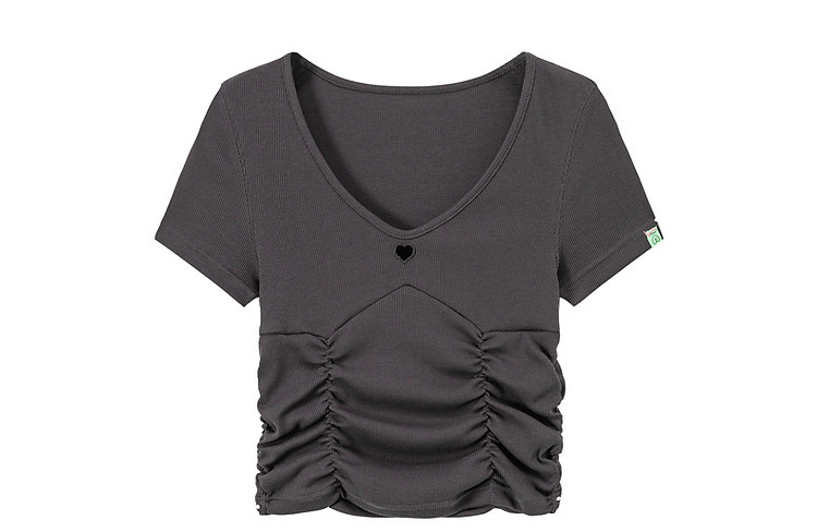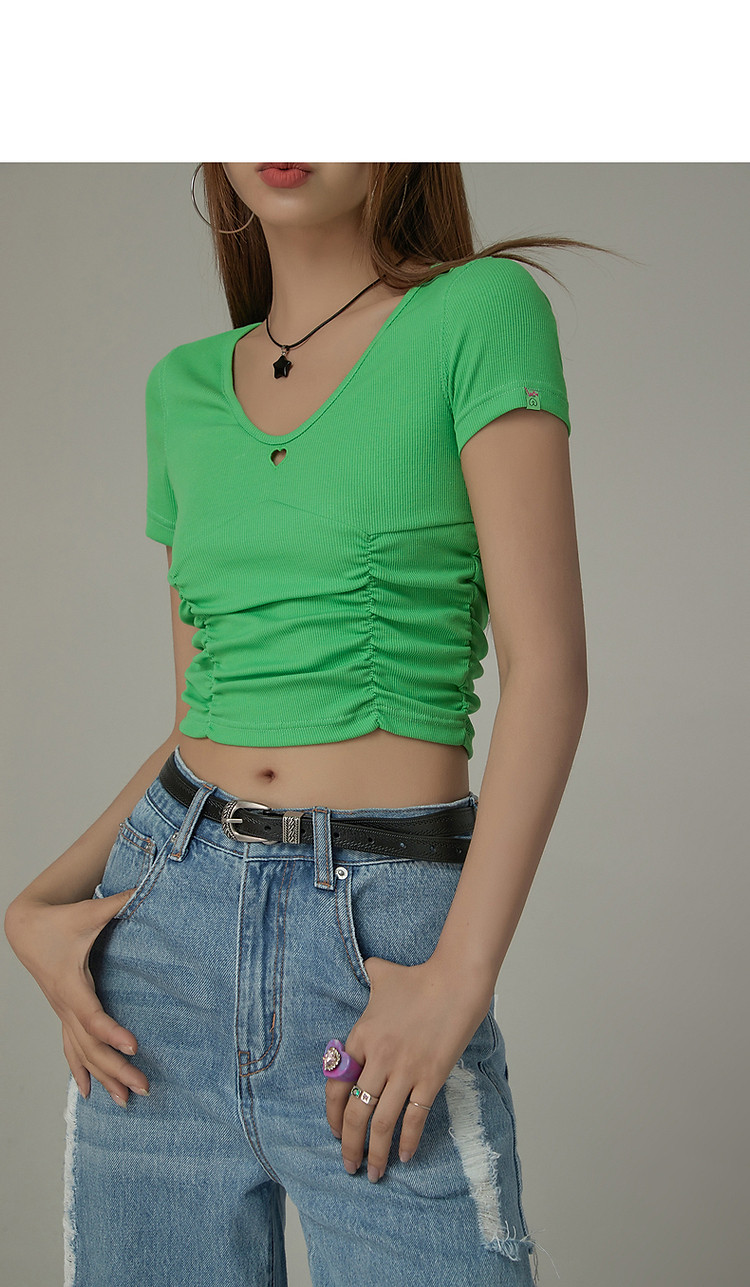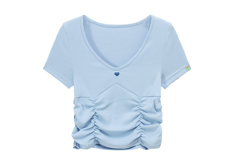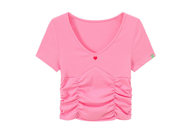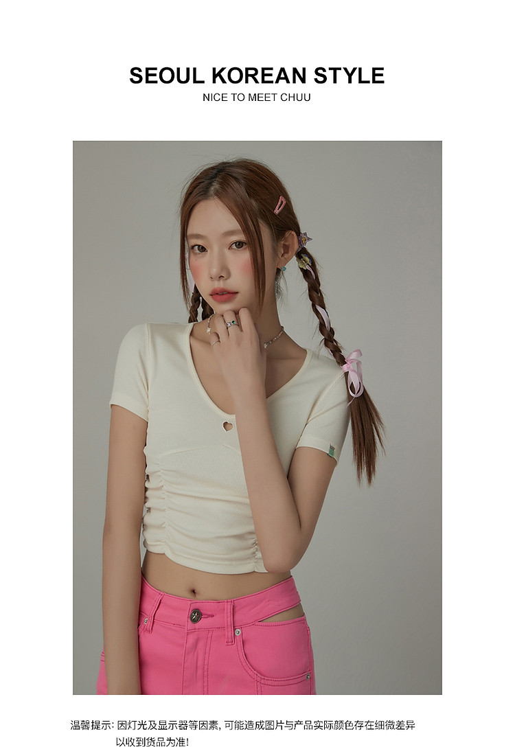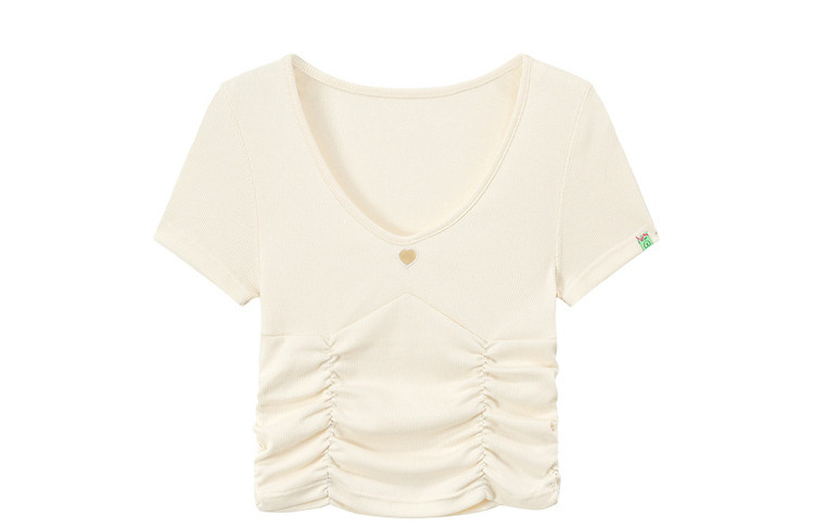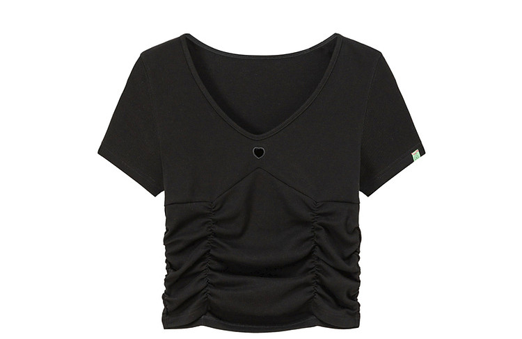 商品名称:爱心镂空T恤女春夏设计感褶皱修身显瘦甜辣短款上衣 342803