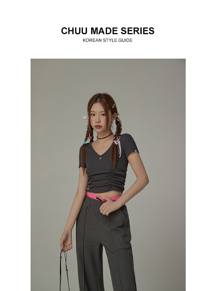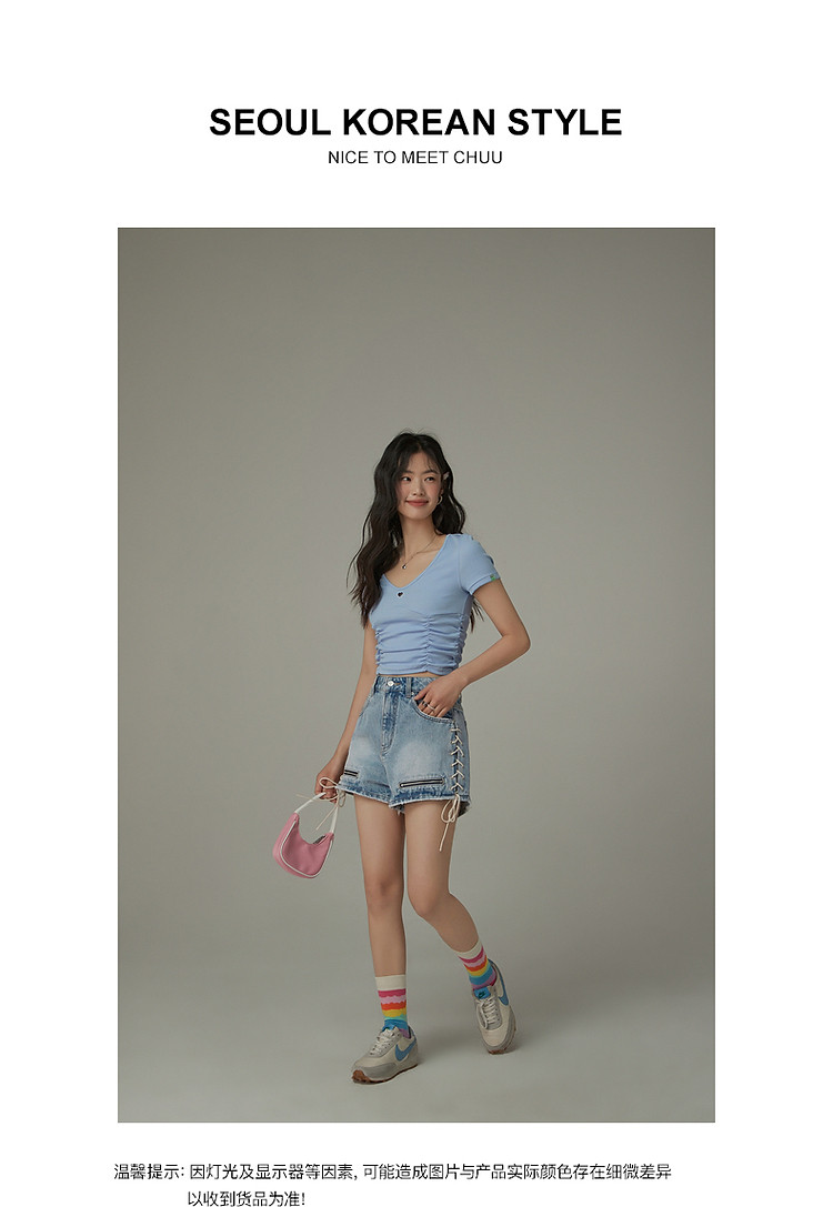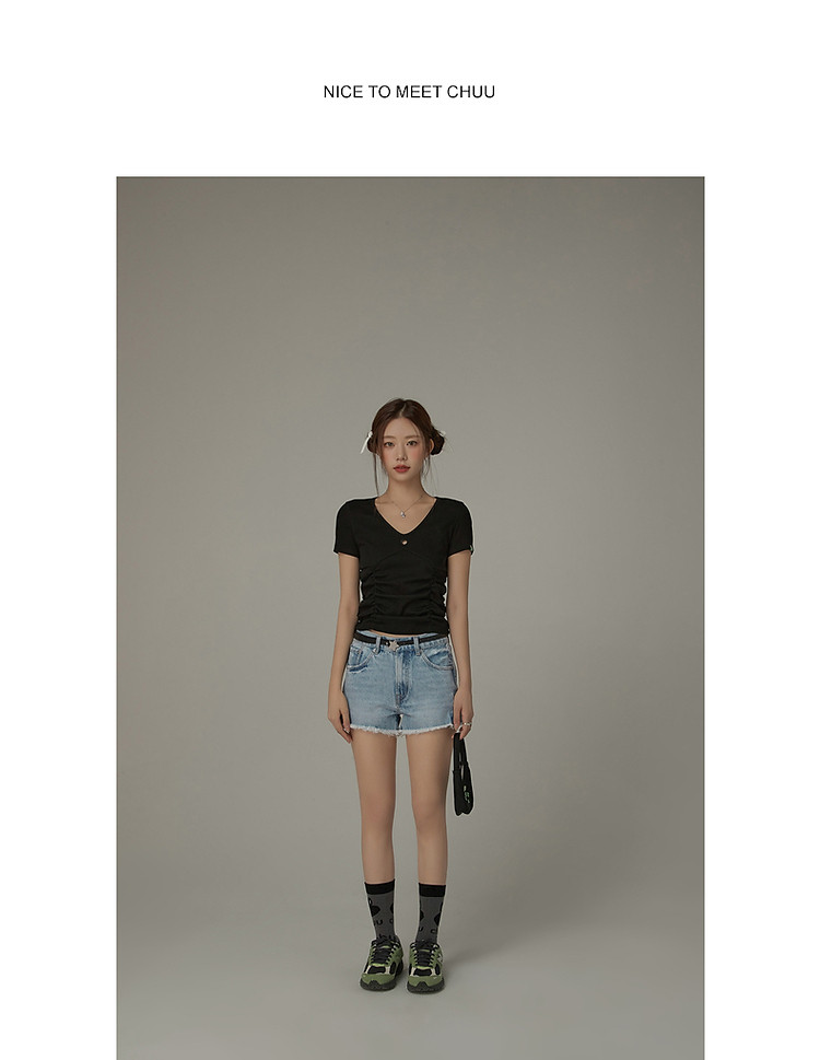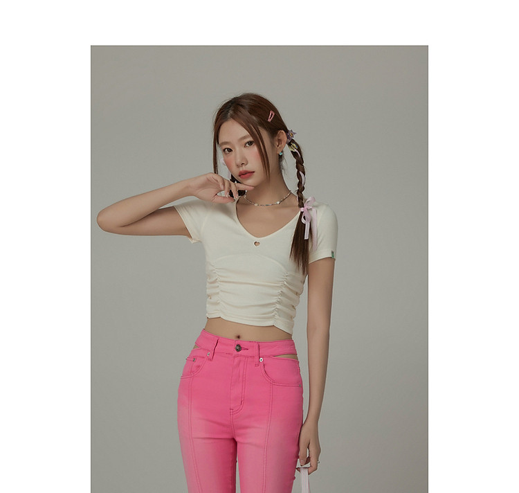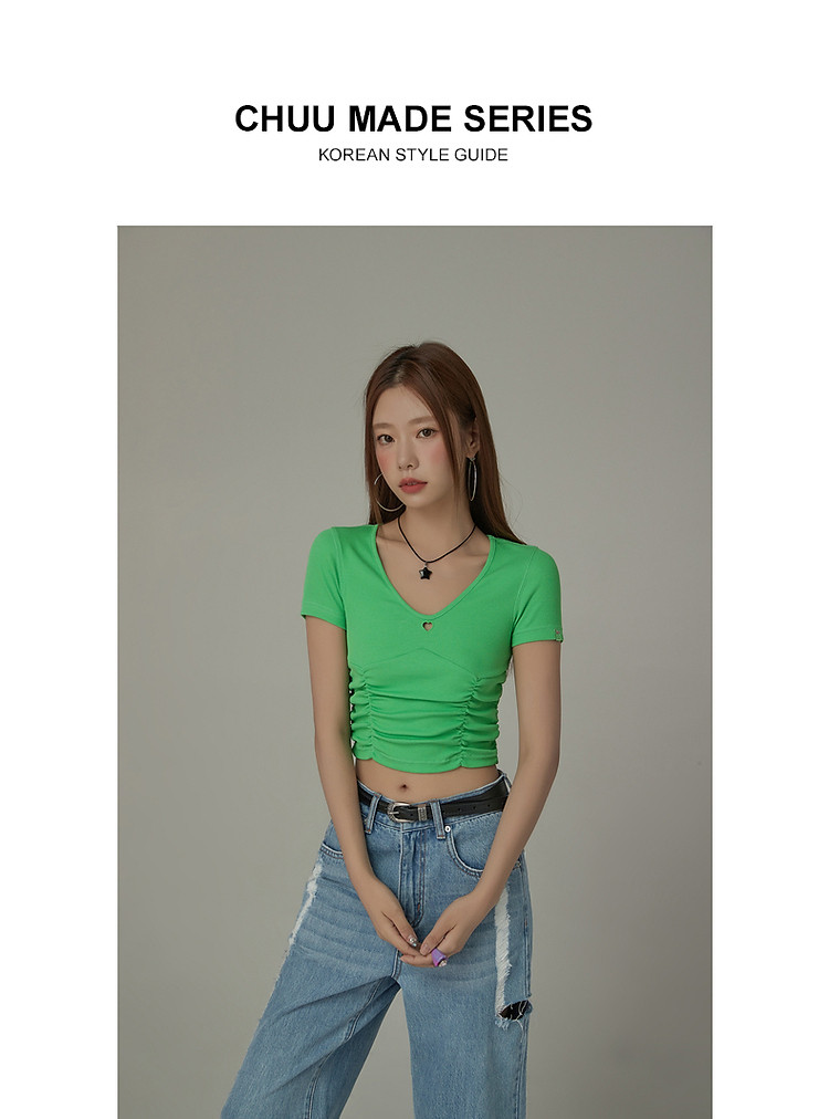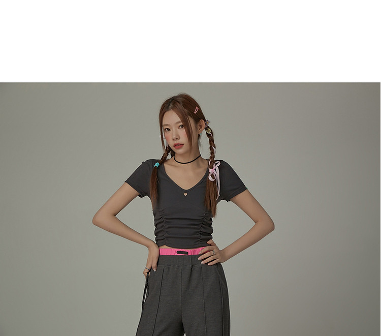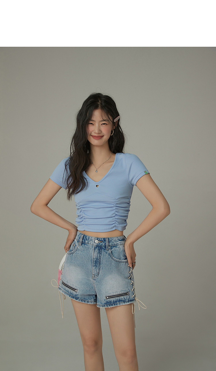 商品名称:爱心镂空T恤女春夏设计感褶皱修身显瘦甜辣短款上衣 342803