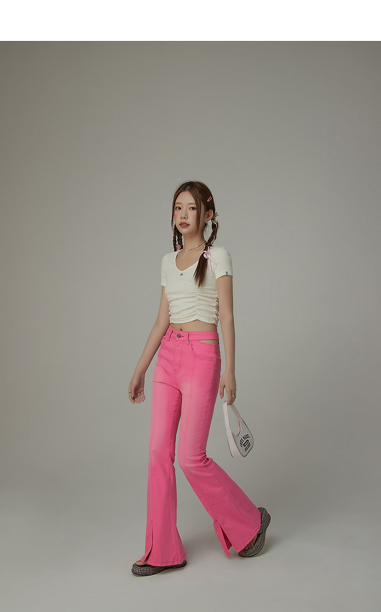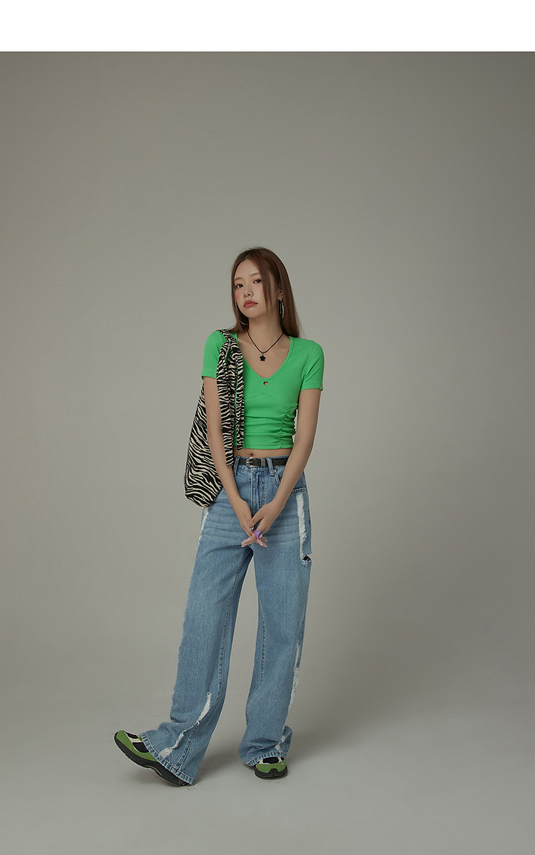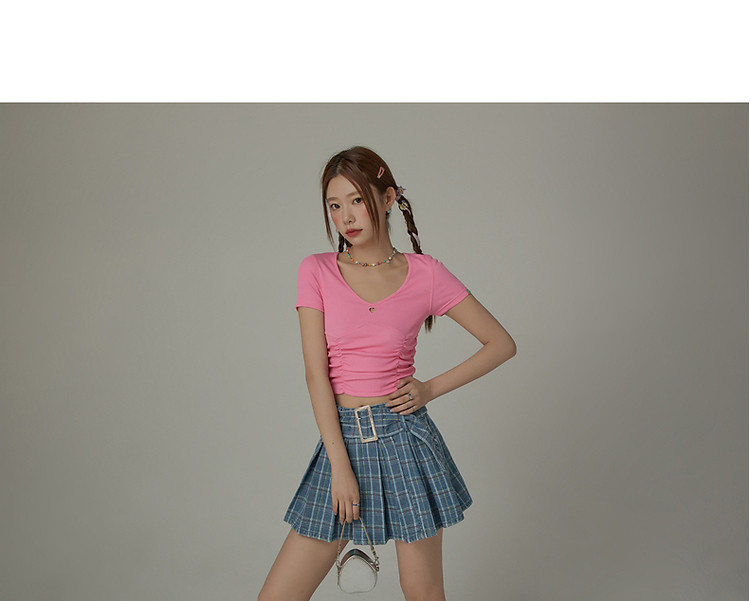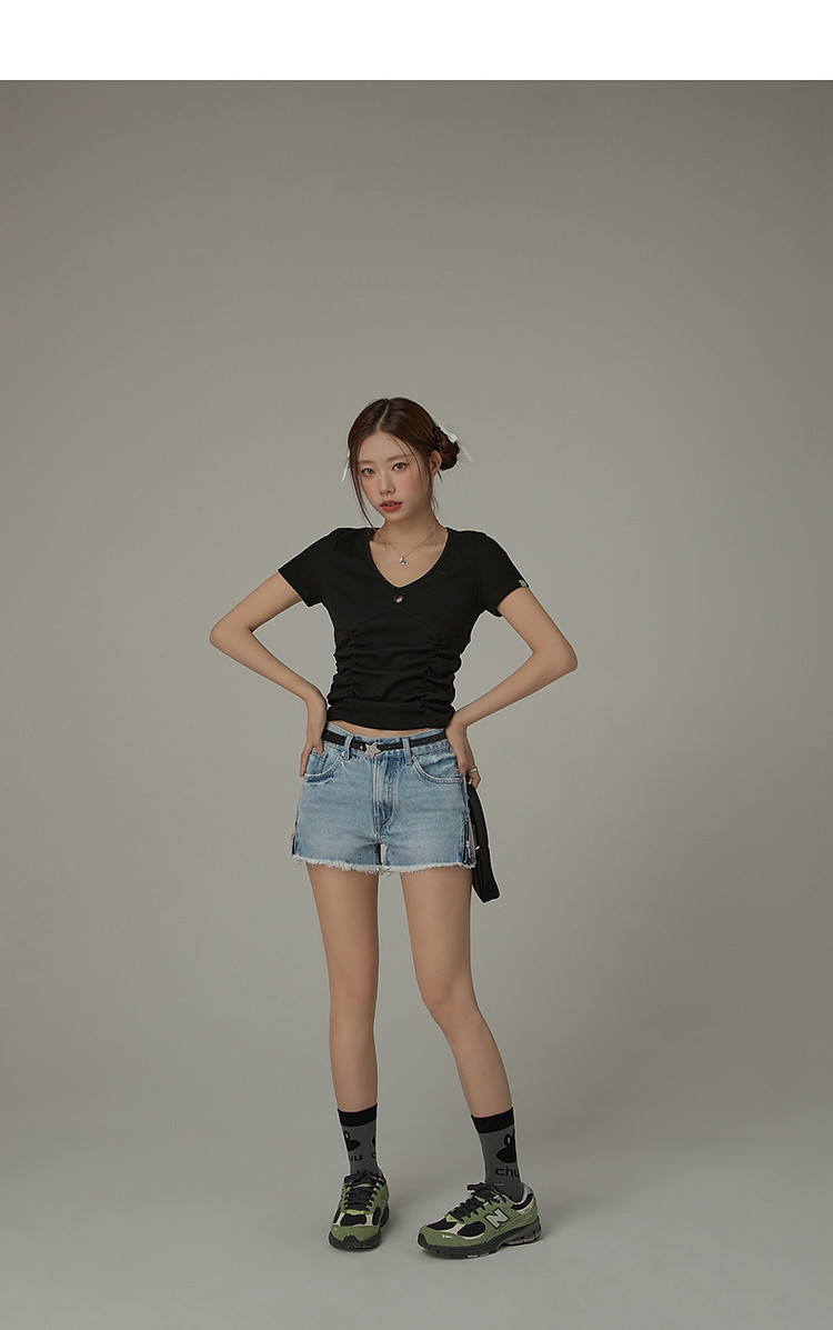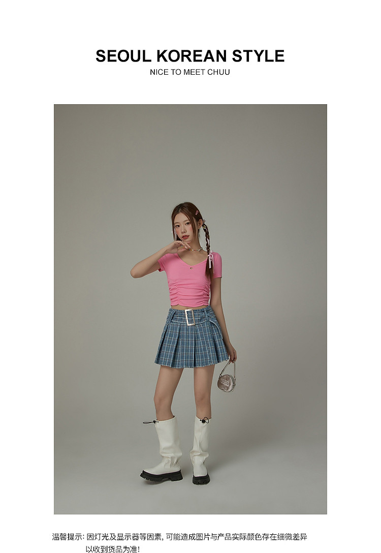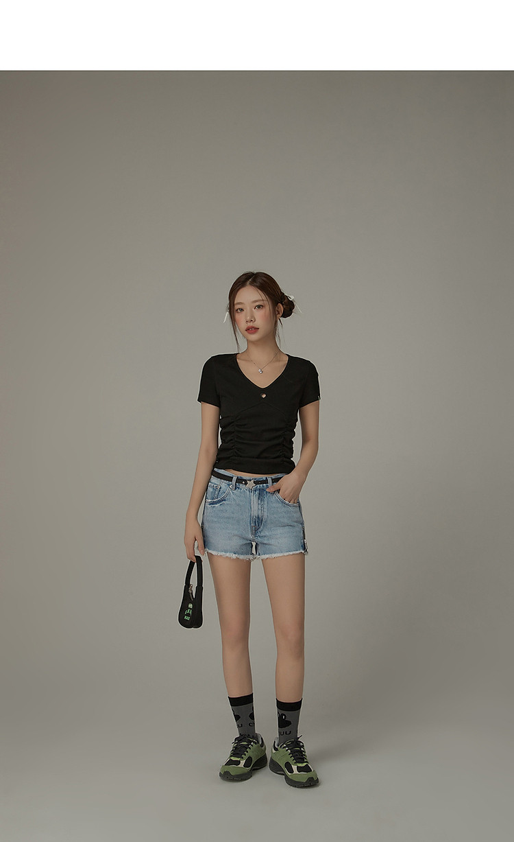 商品名称:爱心镂空T恤女春夏设计感褶皱修身显瘦甜辣短款上衣 342803