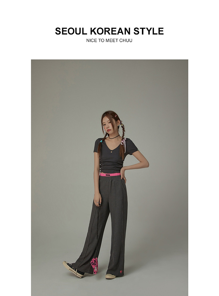 小熊弹力撞色圆领短袖T恤短款套头衫女 984257