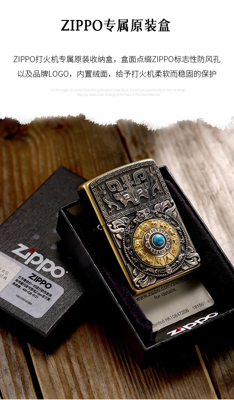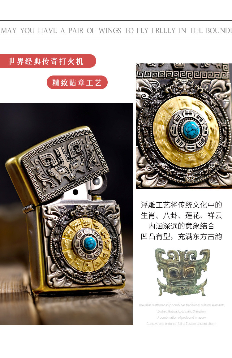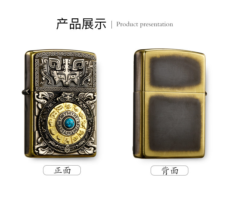 商品名称:【国风】原装煤油打火机立体浮雕八卦盘镶嵌松石吉祥收藏礼物 399198