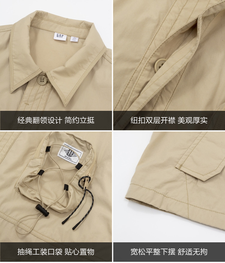 Gap男装春夏轻薄梭织多口袋工装风外套宽松夹克877474 087642
