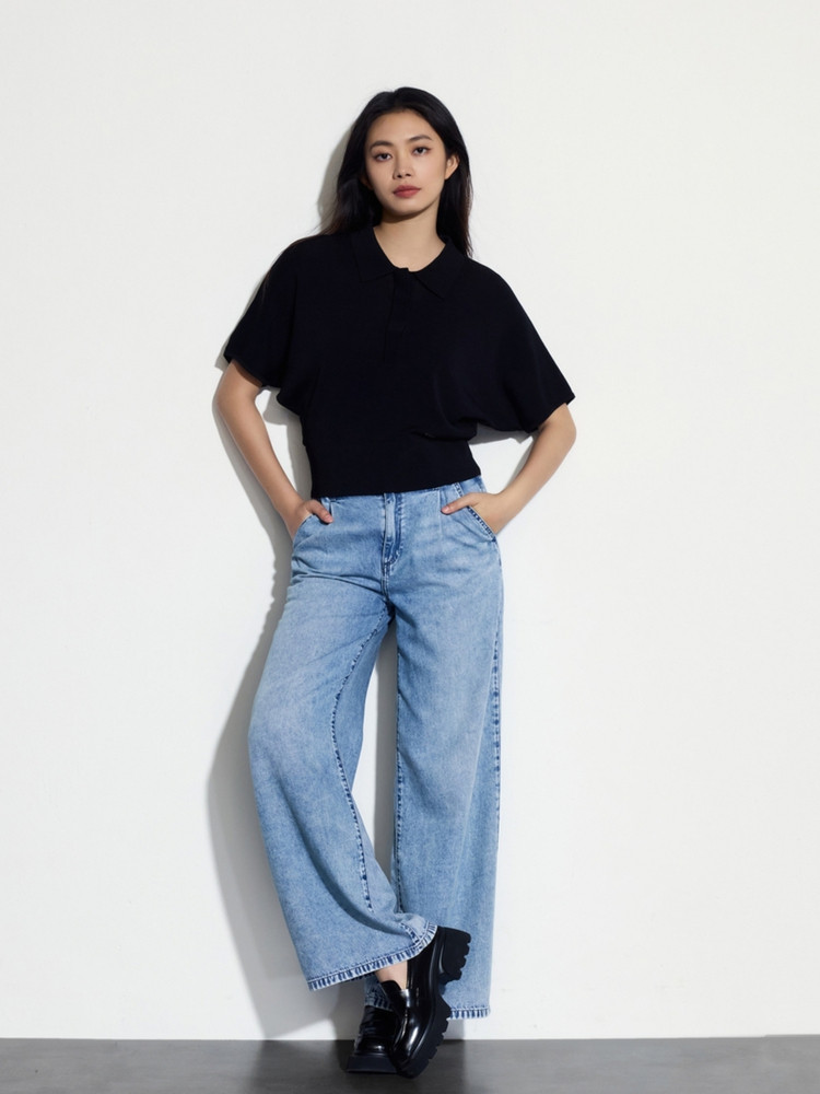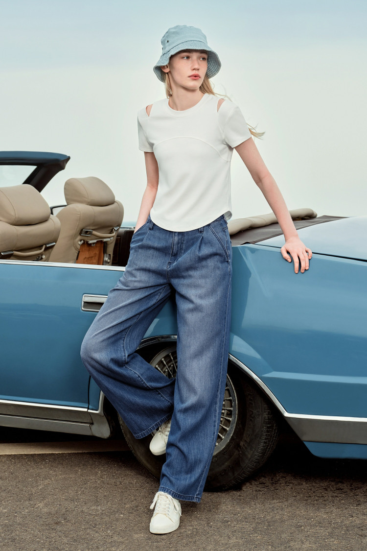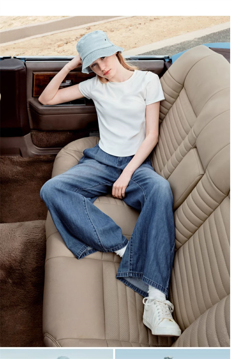Gap女装2024夏季款水洗高腰直筒牛仔裤百搭简约基础长裤465312 452186