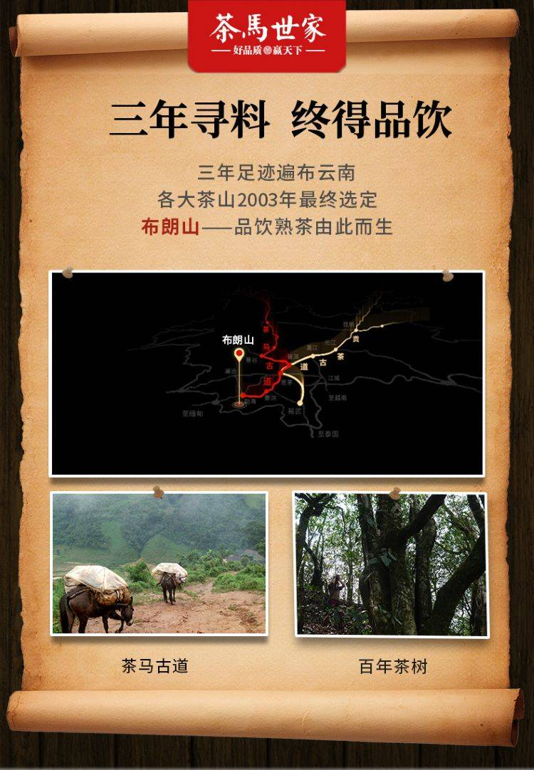 茶马世家品饮熟布朗山六年陈化老茶云南普洱茶陈香醇厚送茶刀