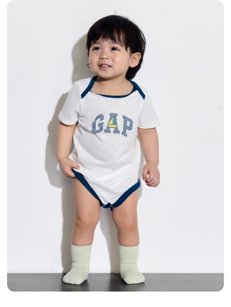 商品名称:Gap婴儿2024春秋季纯棉撞色短袖连体衣儿童装哈衣爬服505556 554138