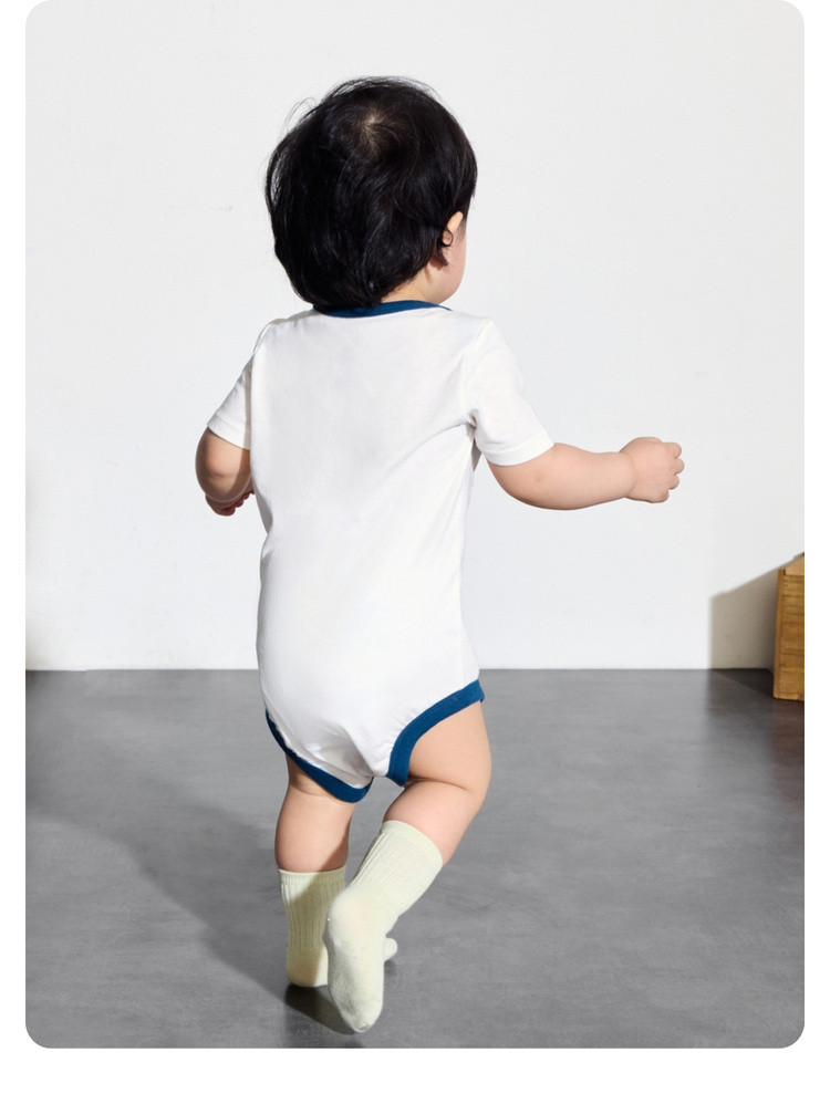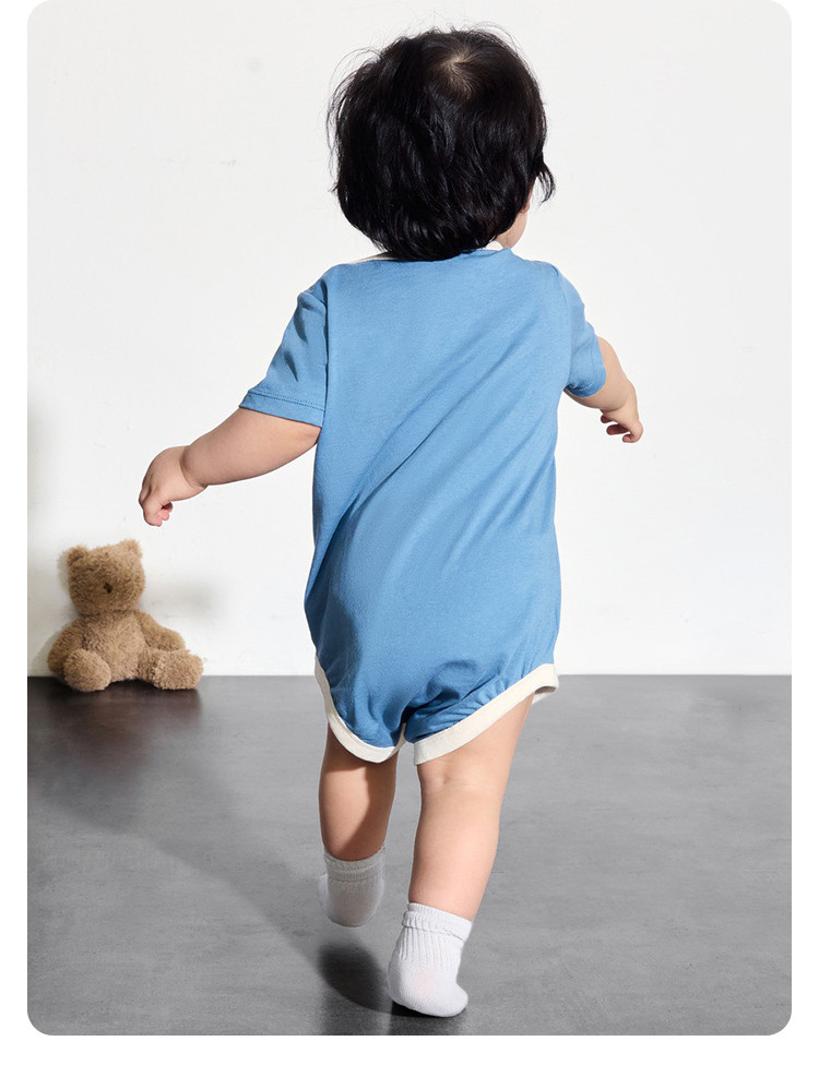 Gap婴儿2024春秋季纯棉撞色短袖连体衣儿童装哈衣爬服505556 554138