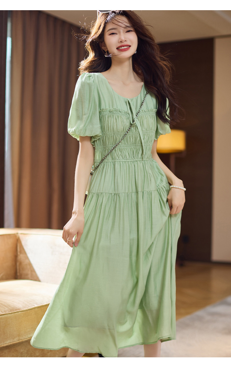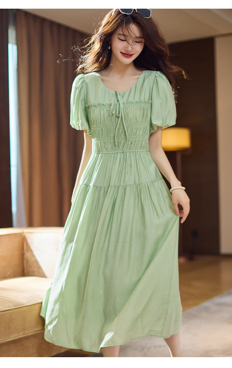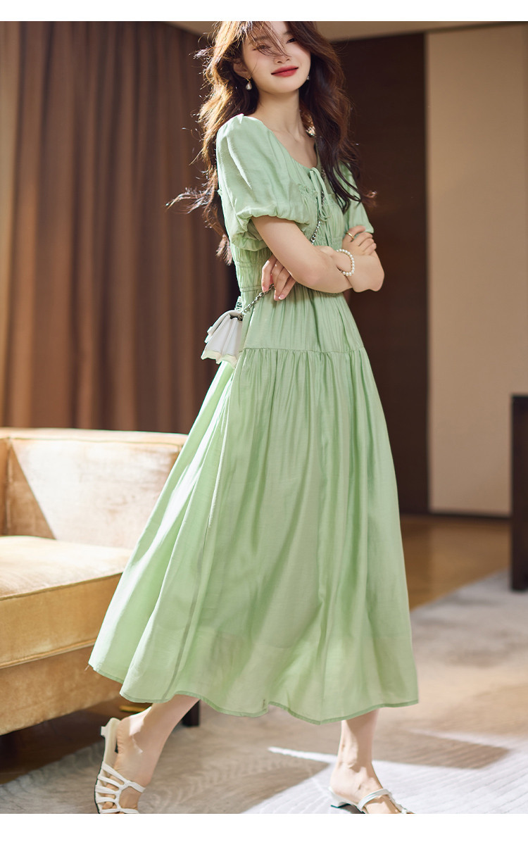 【蝶恋花系列】夏国风新中式度假淑女系带领雪纺印花七分袖连衣裙 768449
