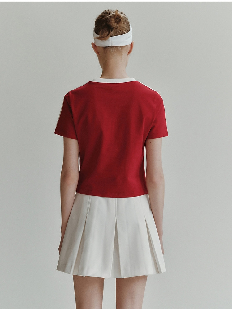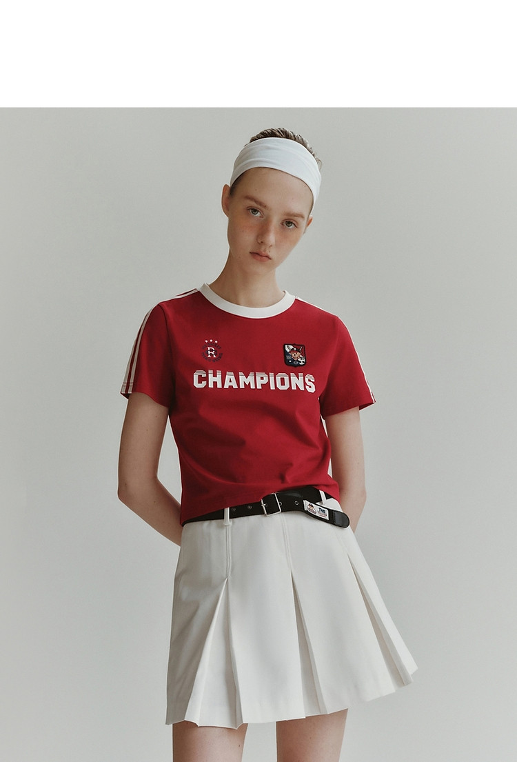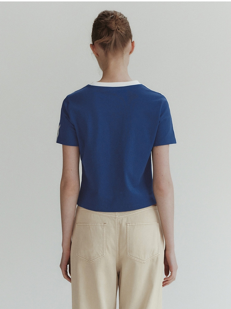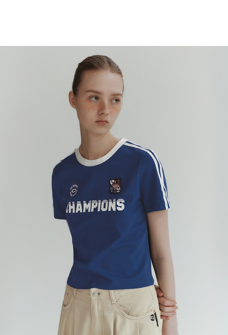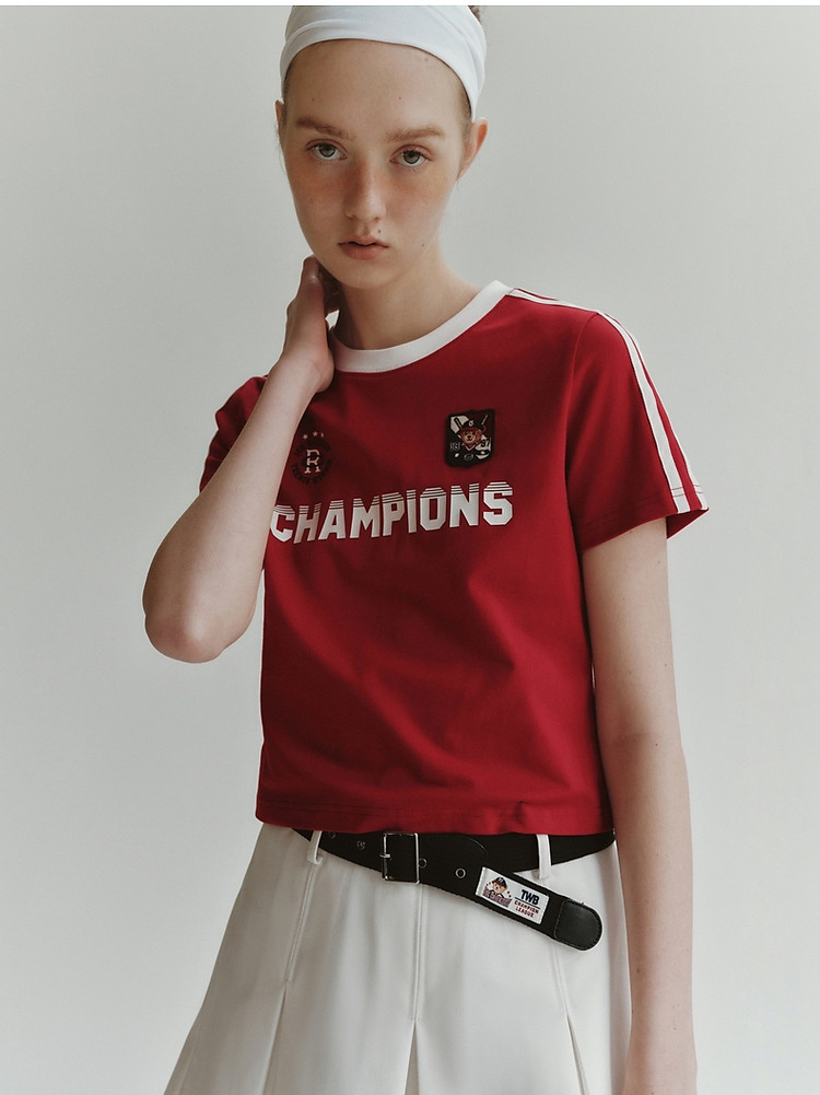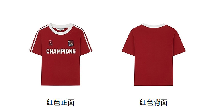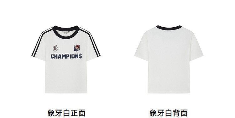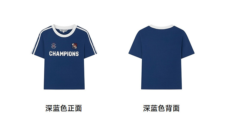 商品名称:小熊弹力撞色圆领短袖T恤短款套头衫女 984257
