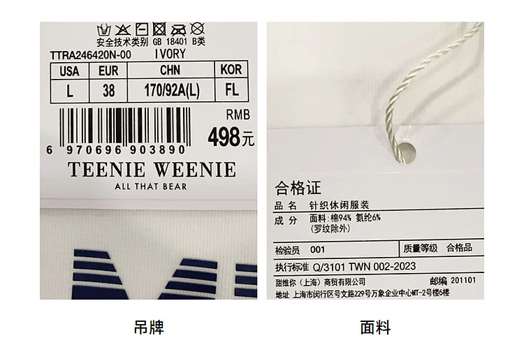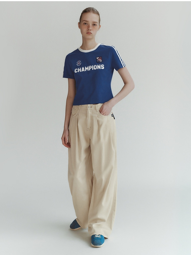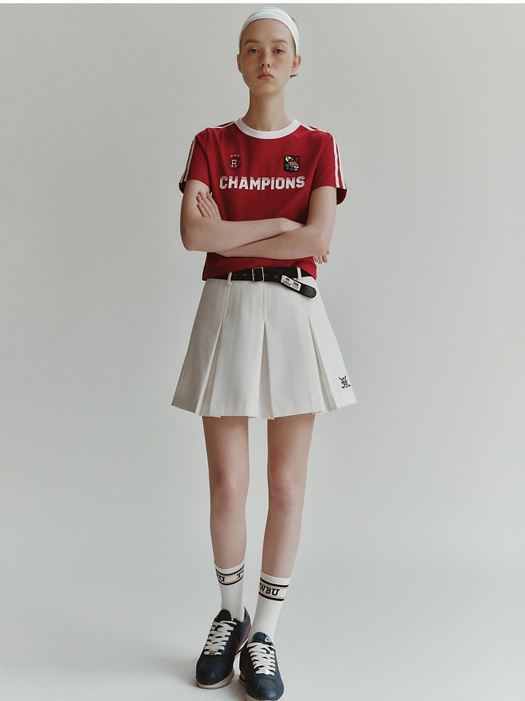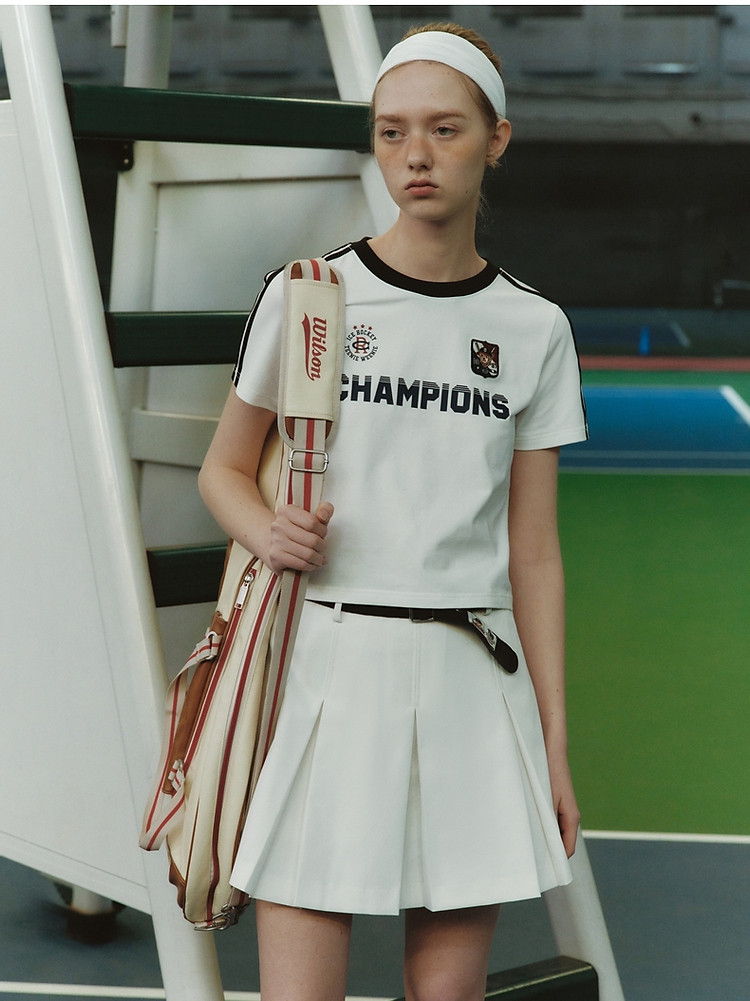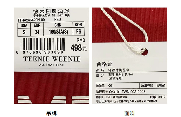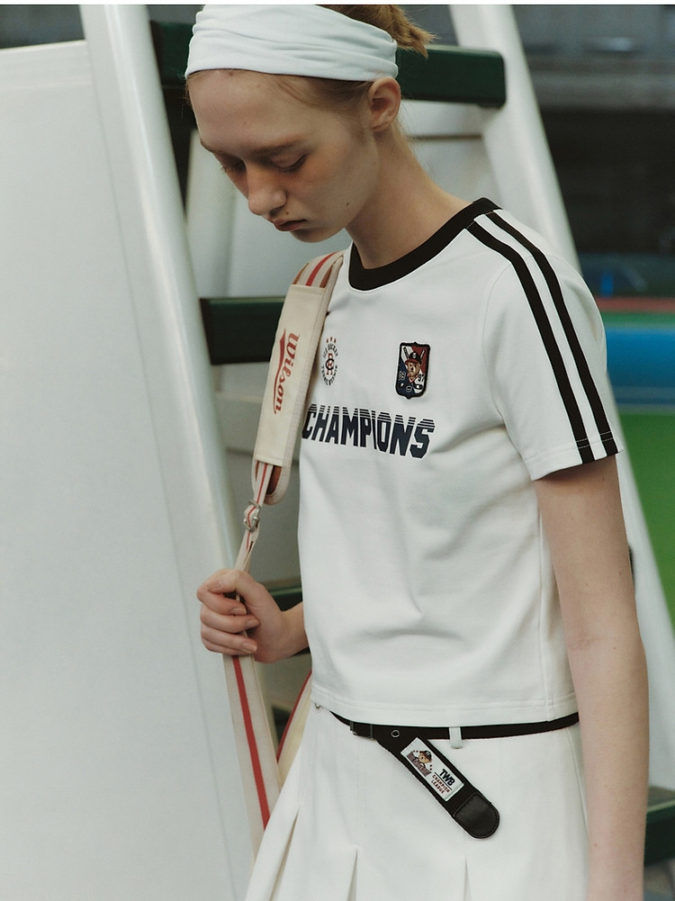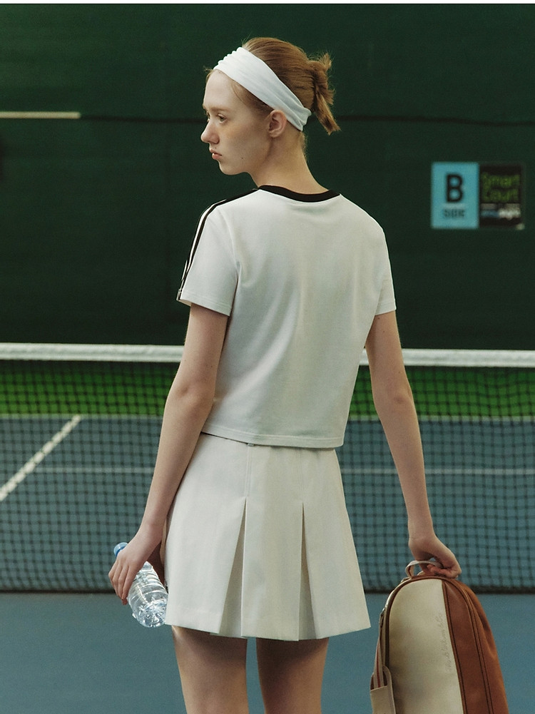 商品名称:小熊弹力撞色圆领短袖T恤短款套头衫女 984257