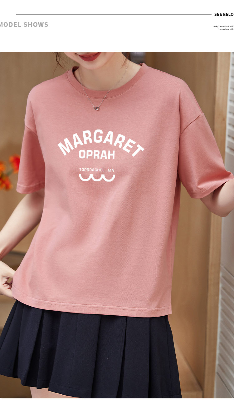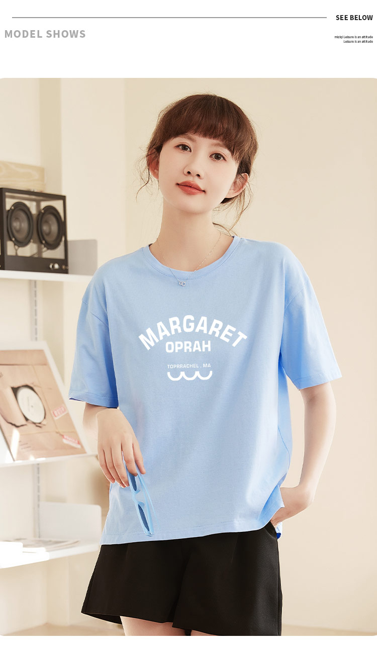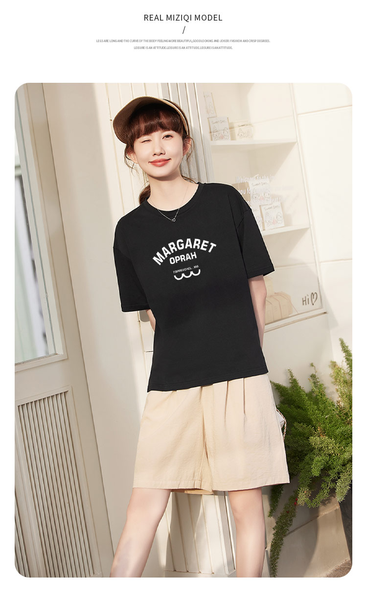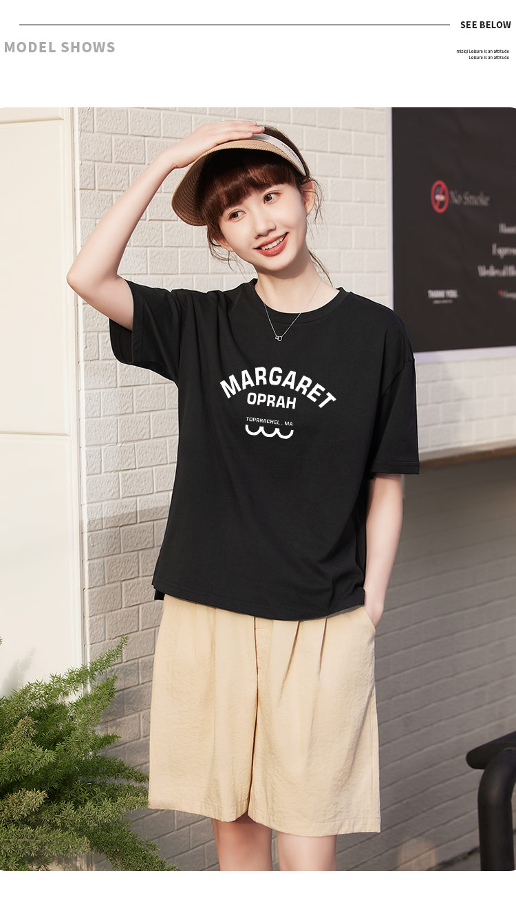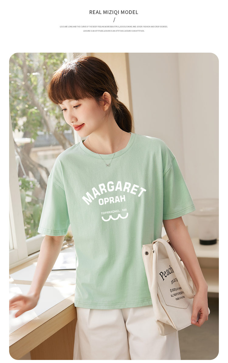 商品名称:米子旗夏季圆领字母印花女式大码T恤宽松休闲慵懒风短袖上衣 332186
