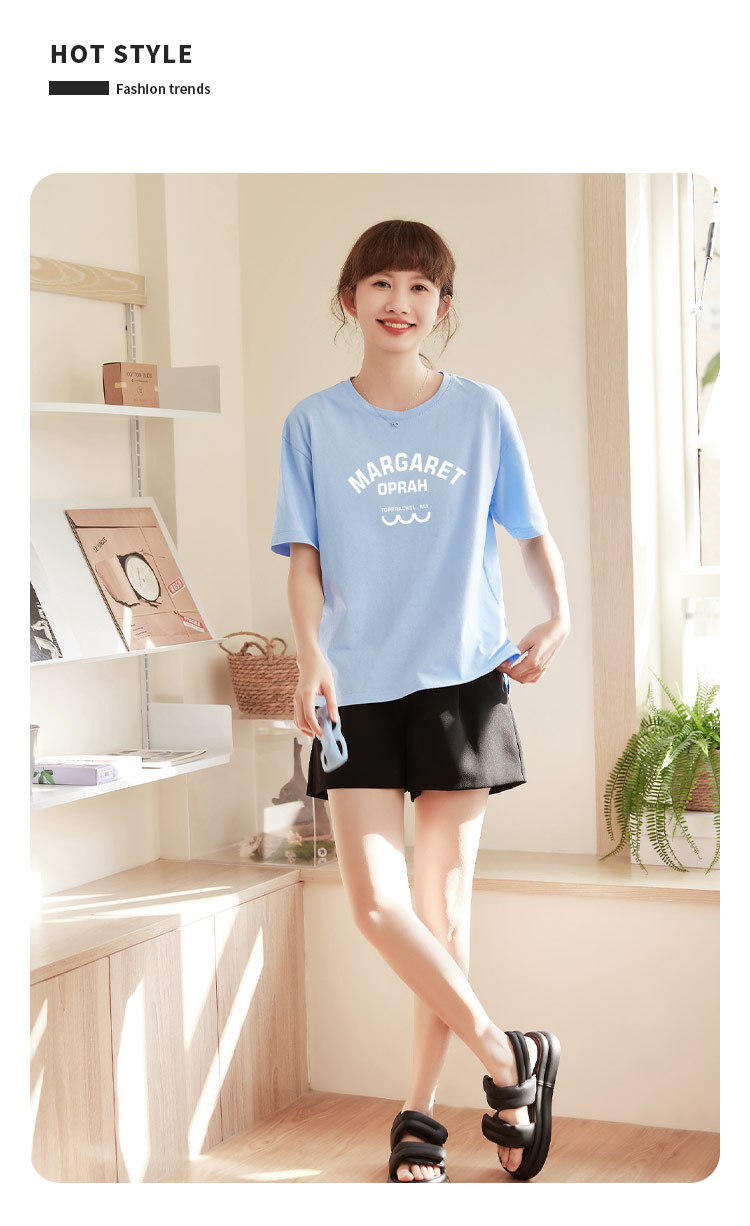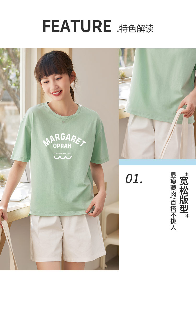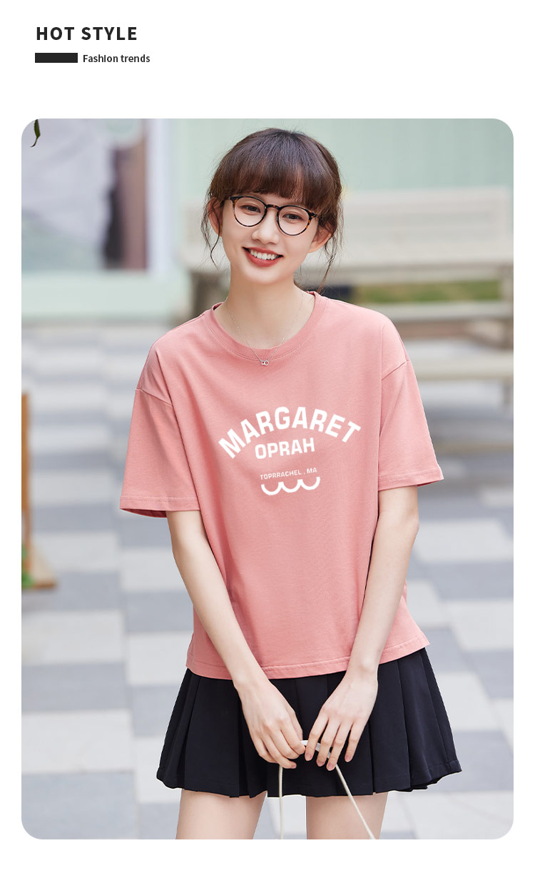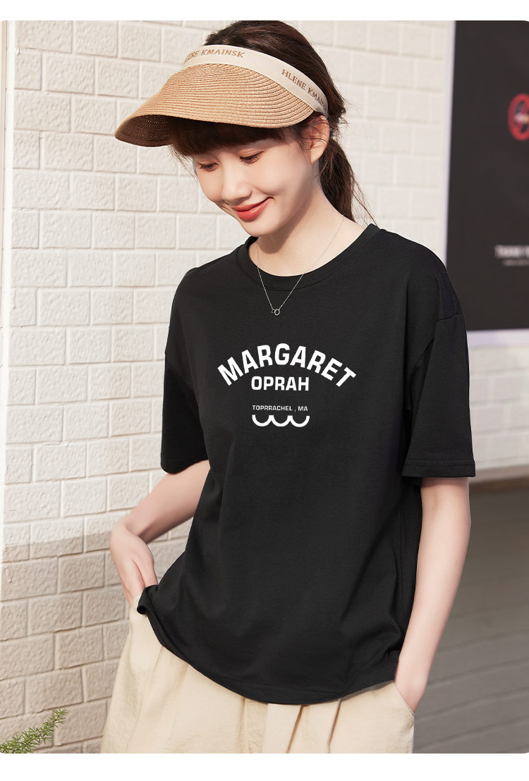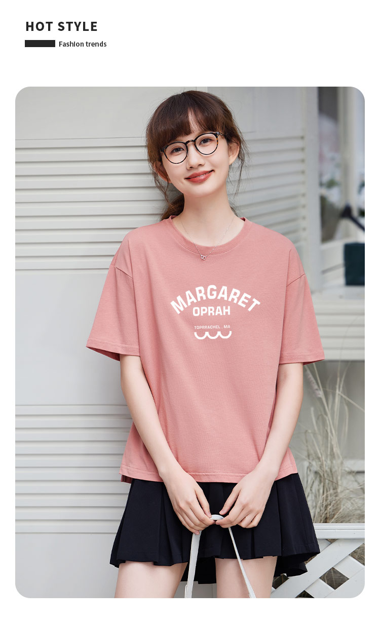 商品名称:米子旗夏季圆领字母印花女式大码T恤宽松休闲慵懒风短袖上衣 332186