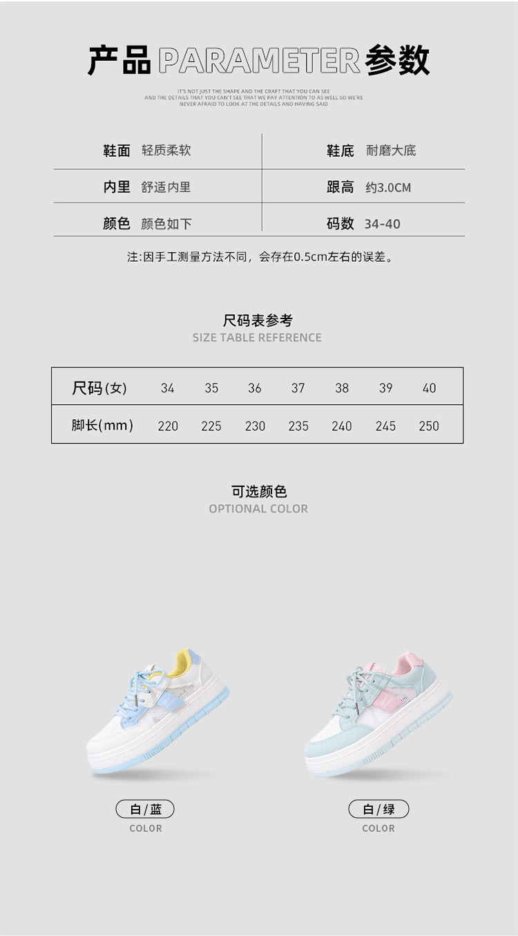 商品名称:网面透气小白鞋女夏季2025爆款休闲鞋子百搭厚底学生运动板鞋 497608
