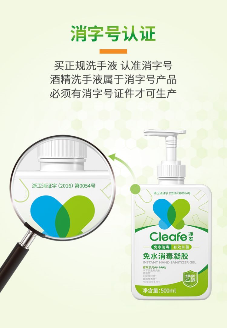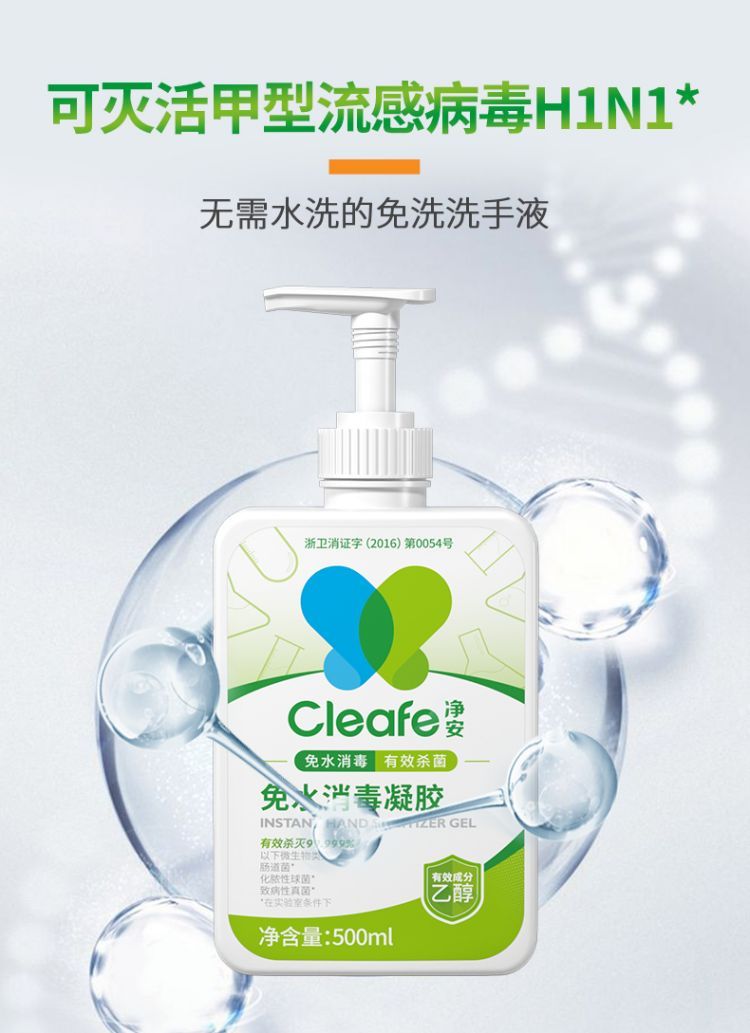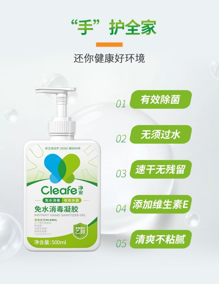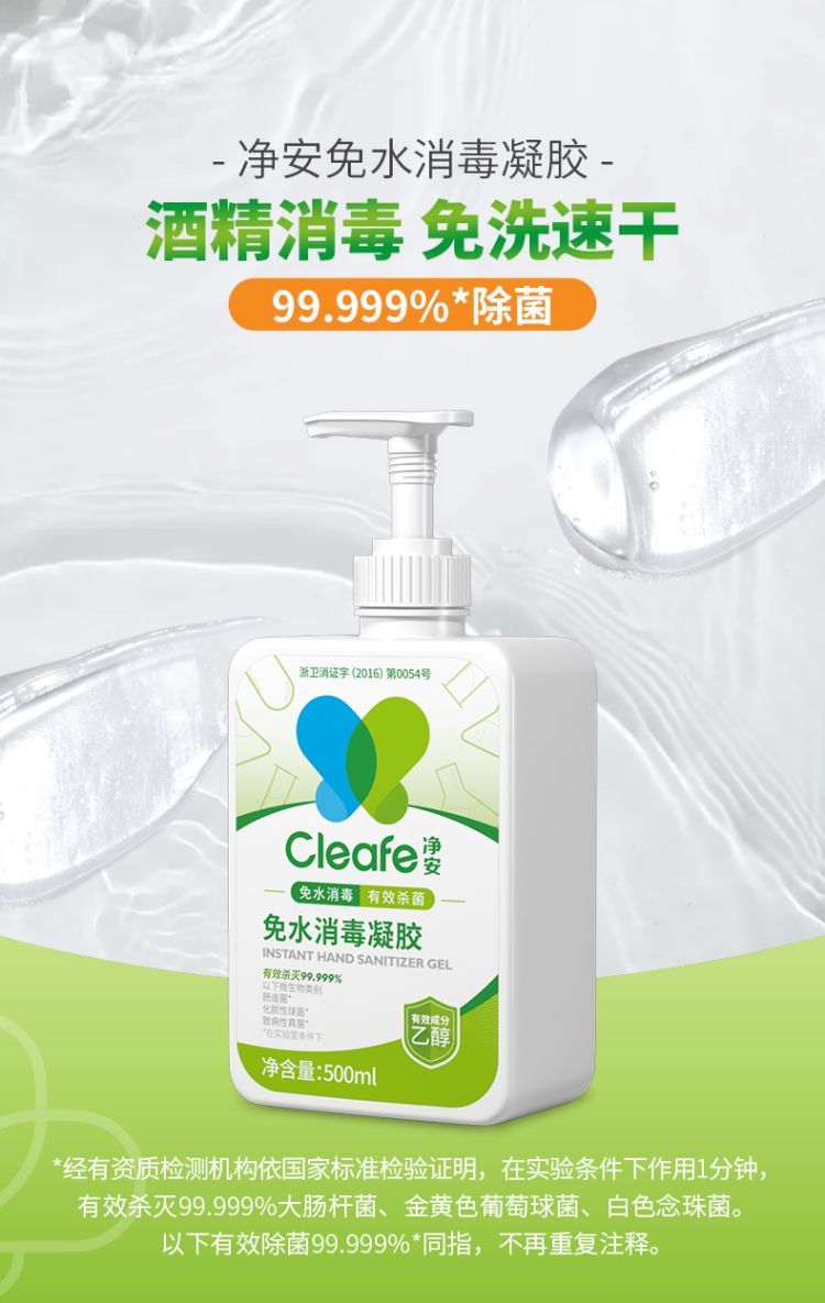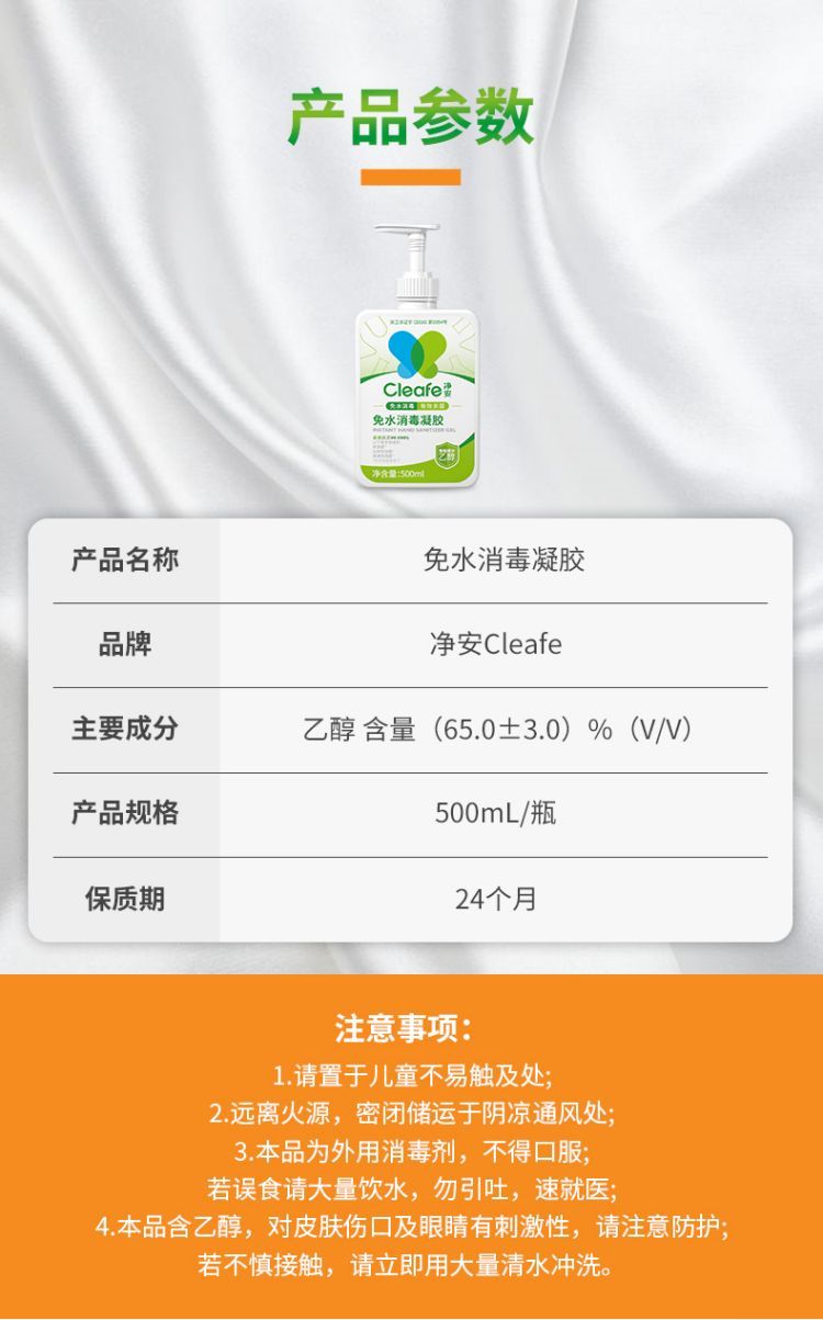 商品名称:净安 免水消毒凝胶500ml 酒精消毒免洗速干