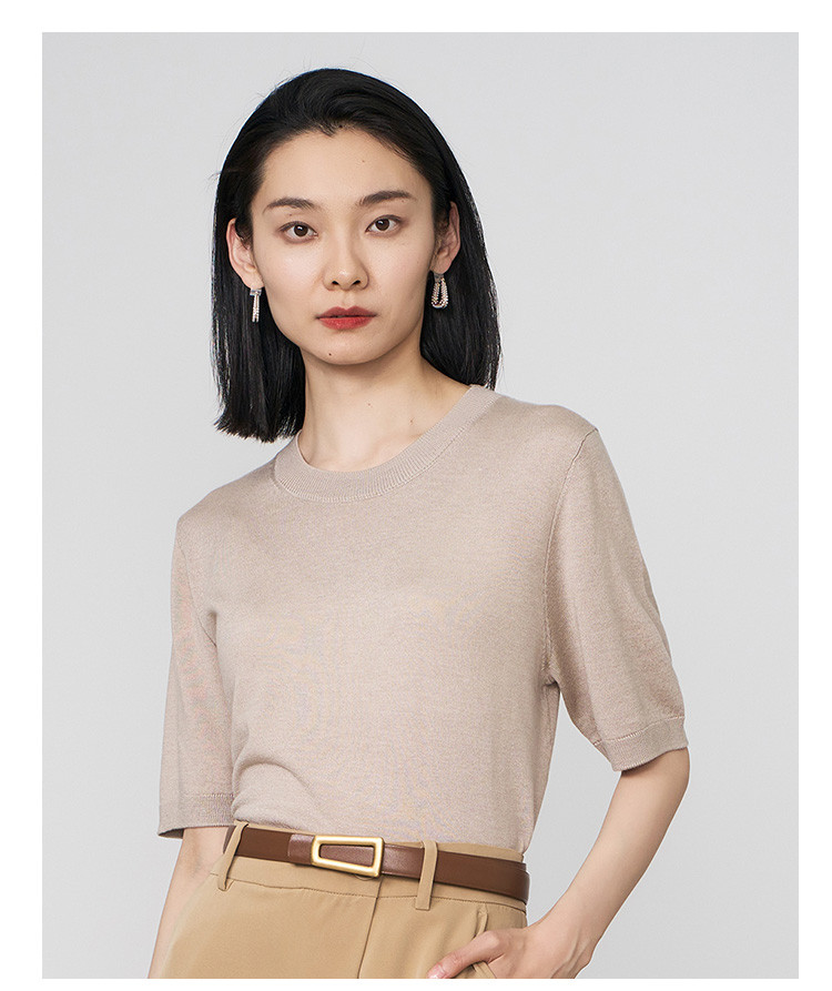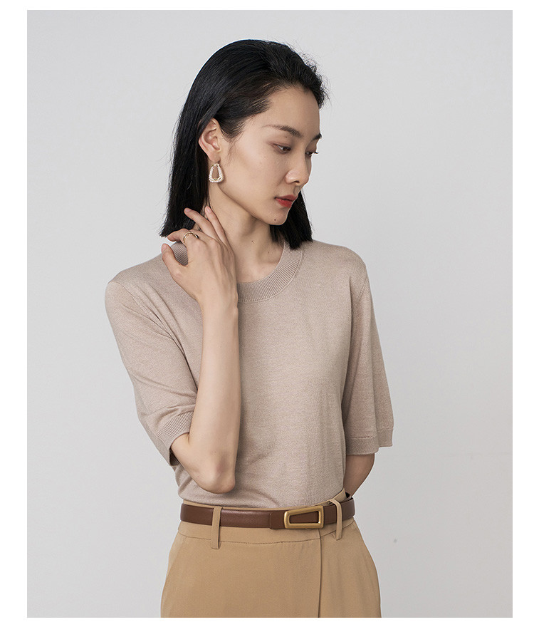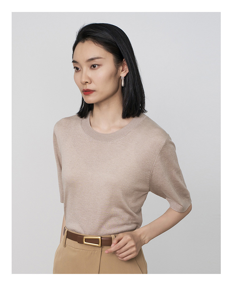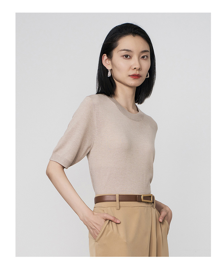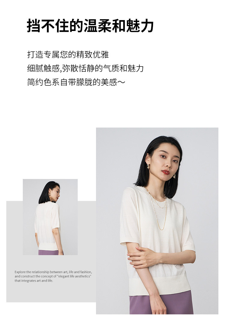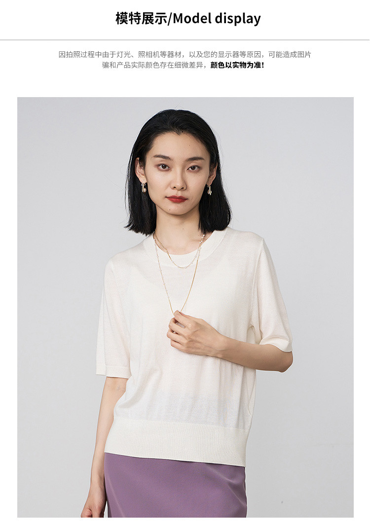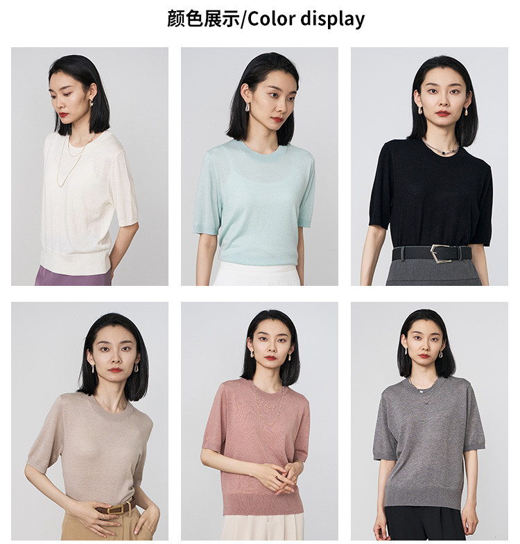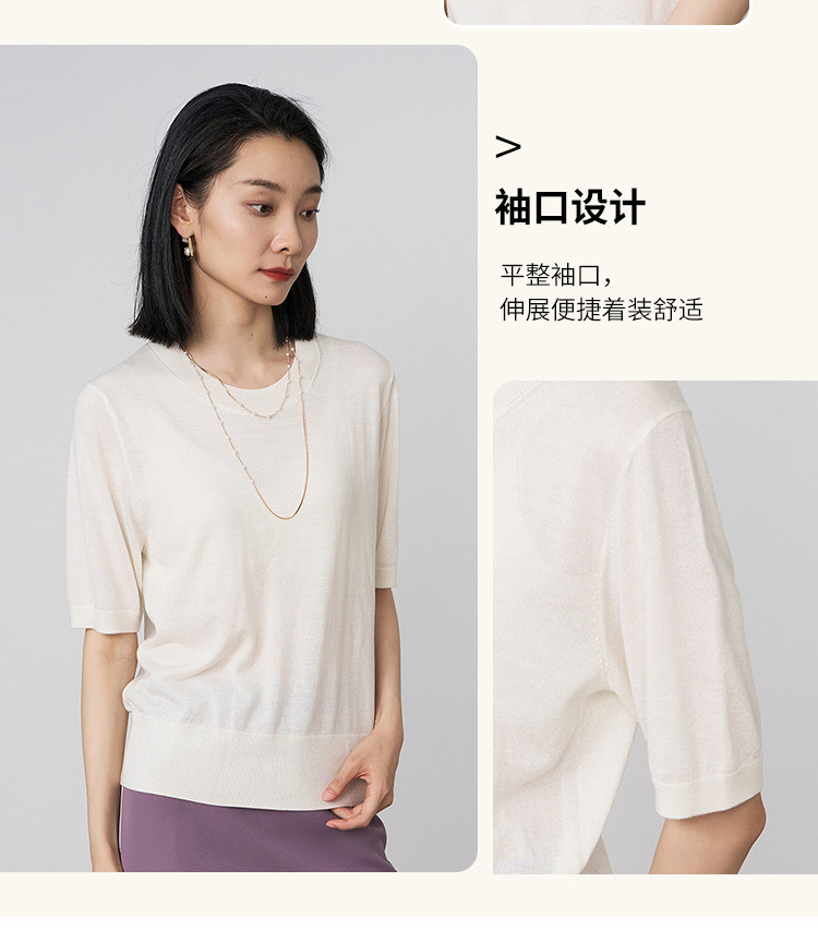 商品名称:【含天丝&羊毛&桑蚕丝】春秋新款T恤女式上衣圆领针织短袖 920223
