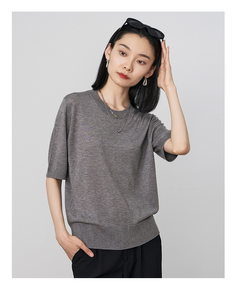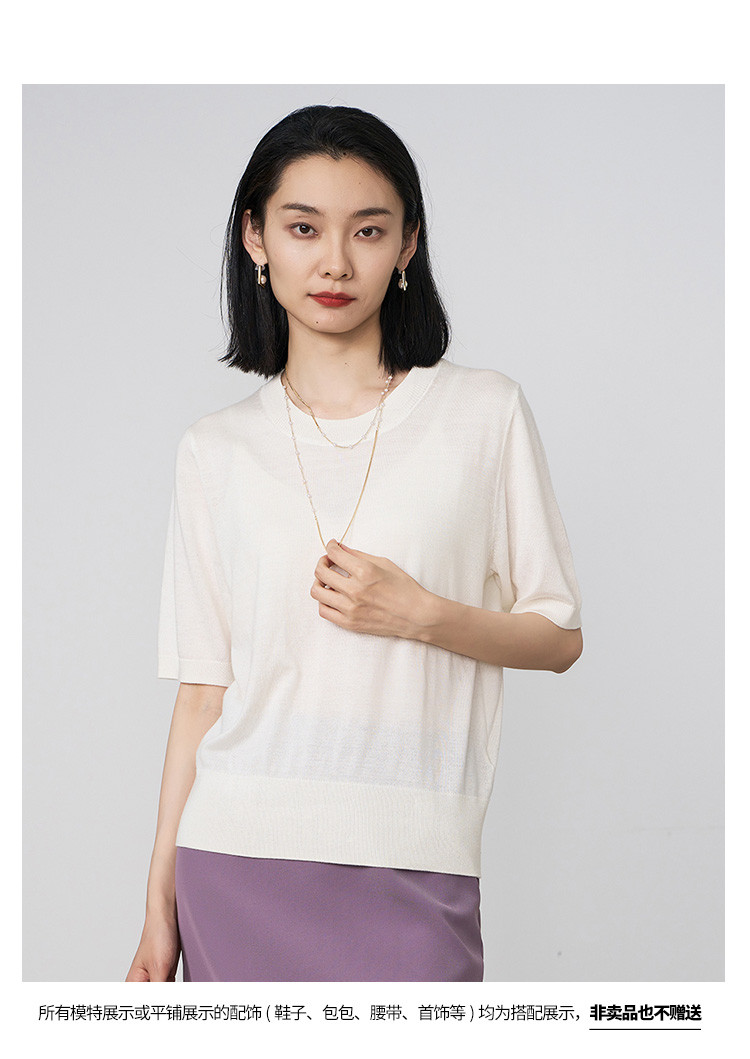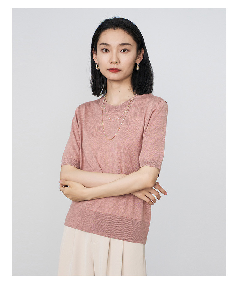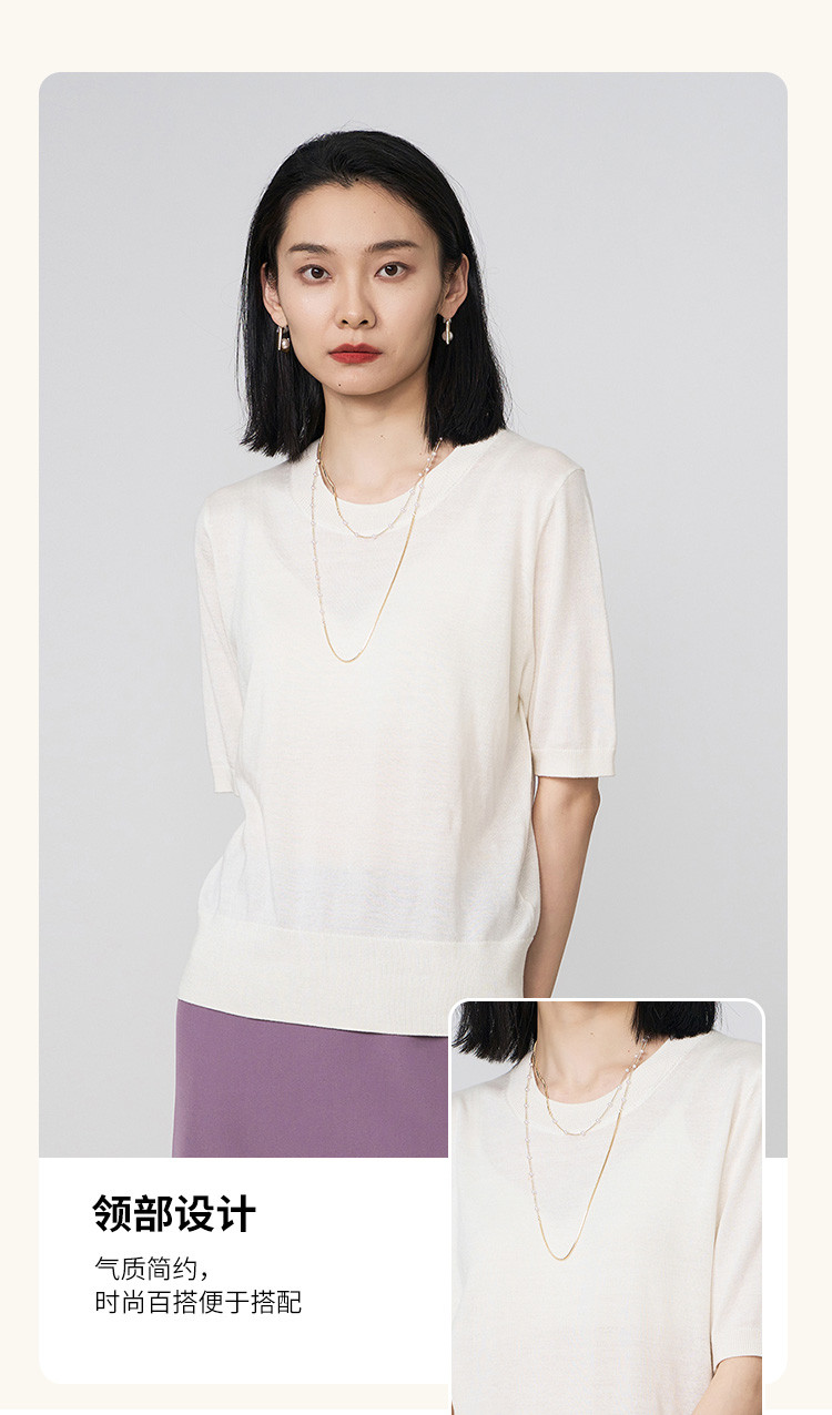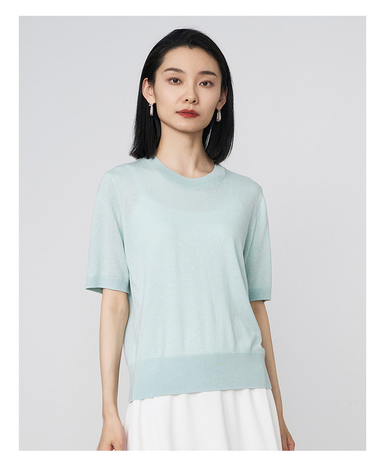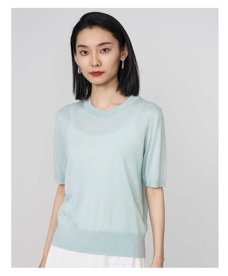 【含天丝&羊毛&桑蚕丝】春秋新款T恤女式上衣圆领针织短袖 920223