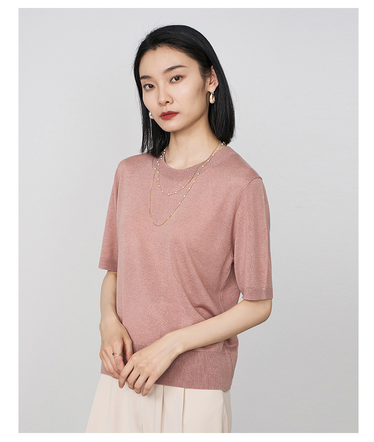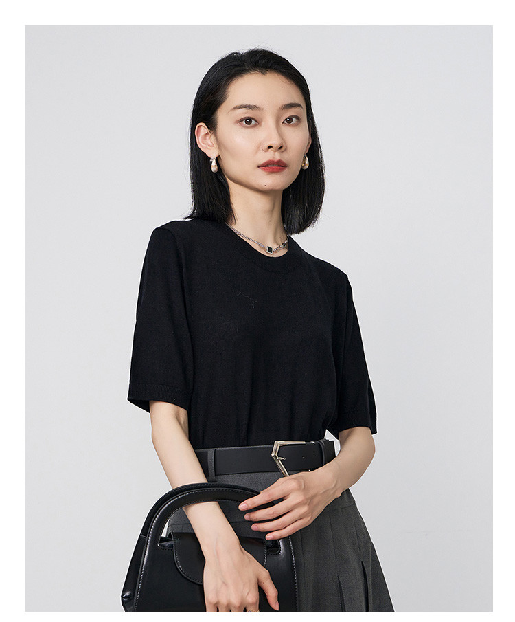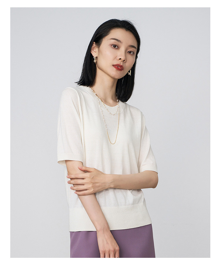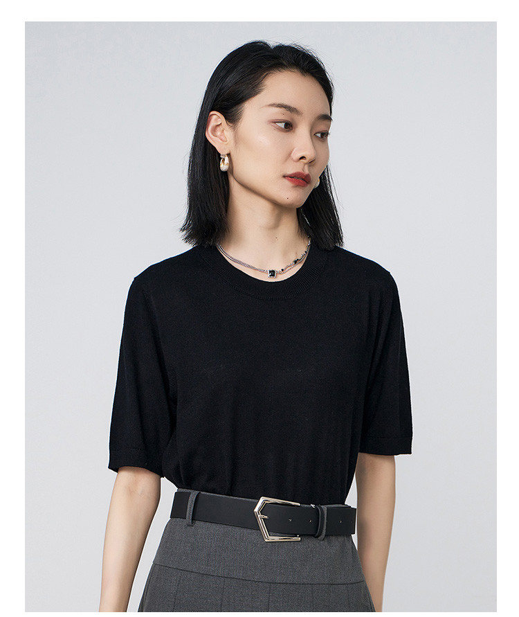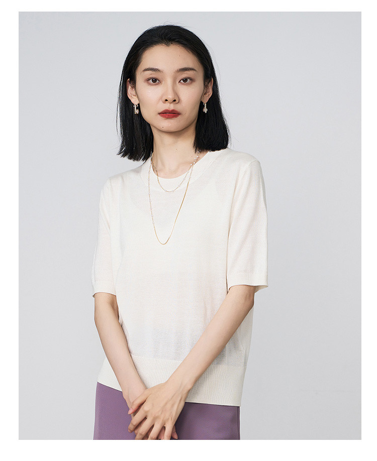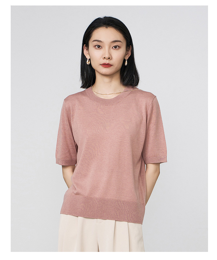 【含天丝&羊毛&桑蚕丝】春秋新款T恤女式上衣圆领针织短袖 920223