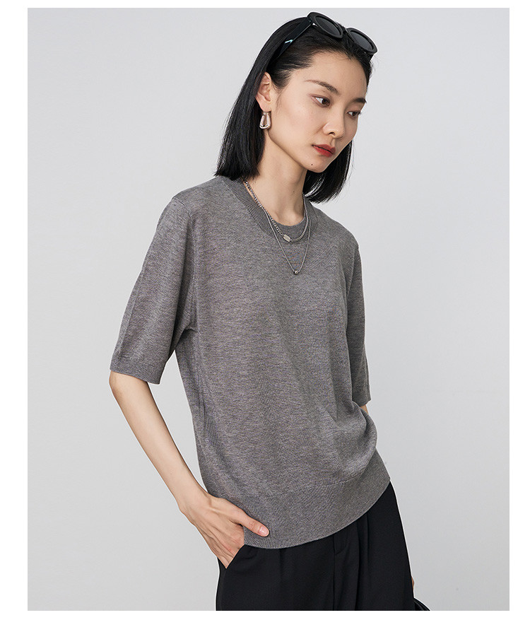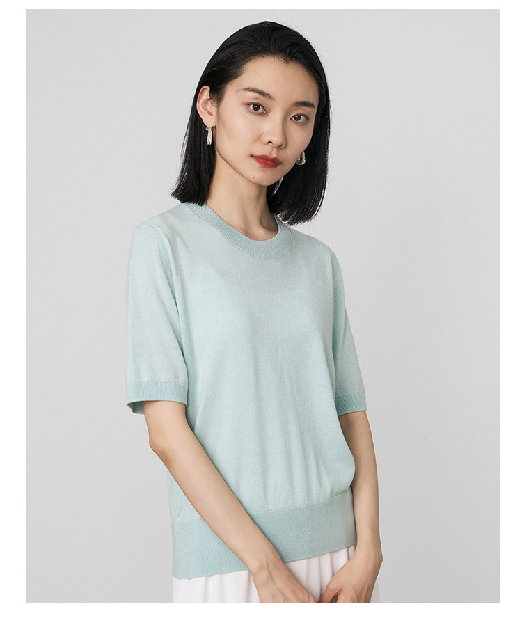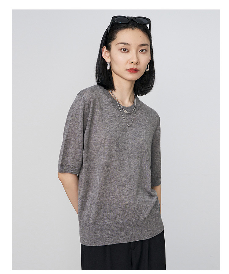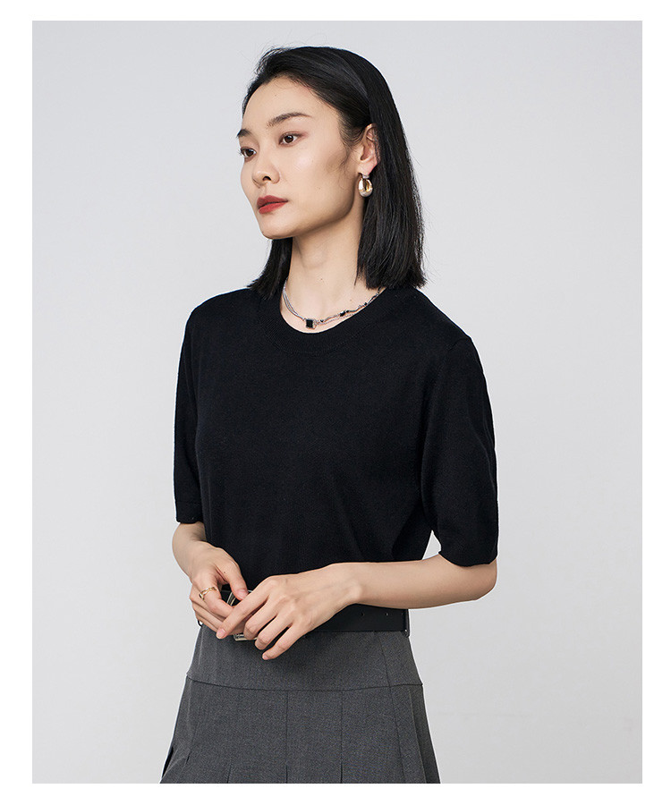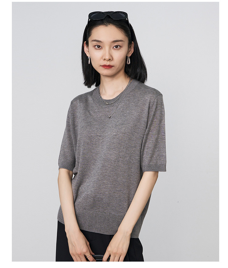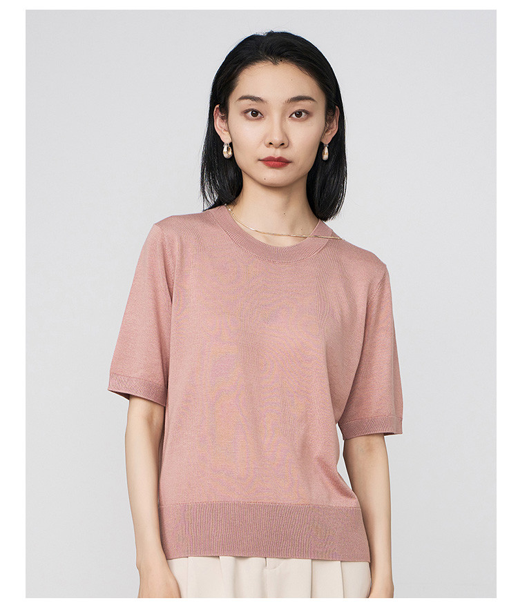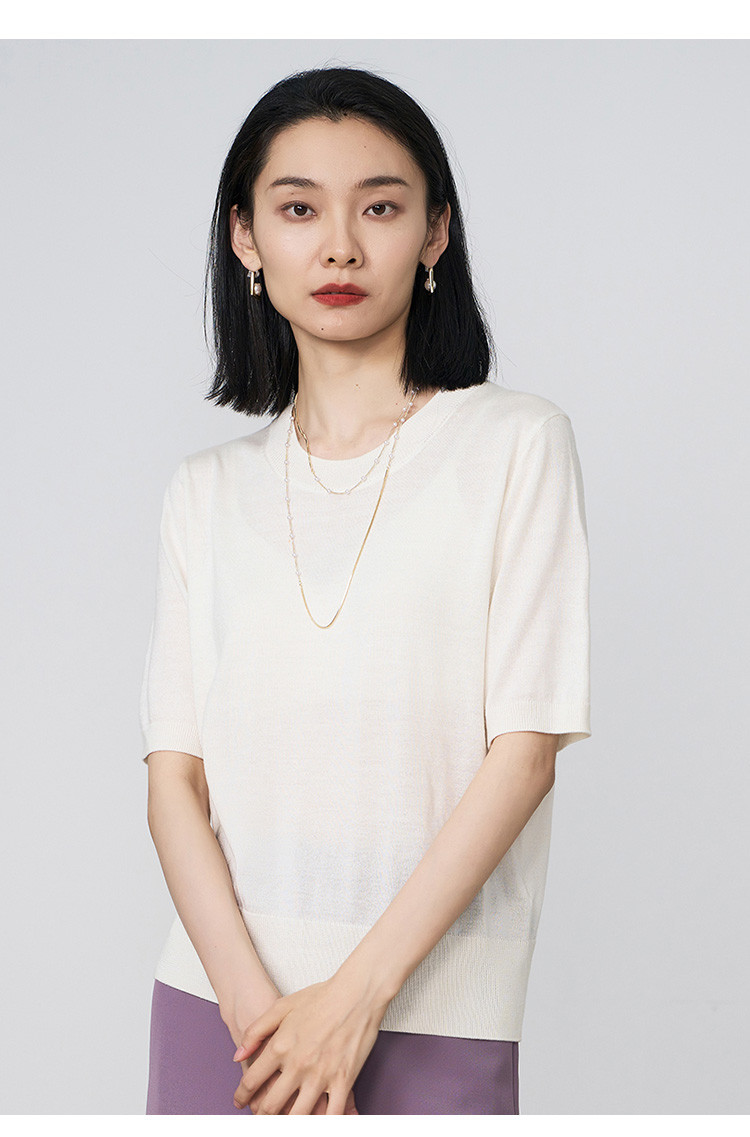 【含天丝&羊毛&桑蚕丝】春秋新款T恤女式上衣圆领针织短袖 920223