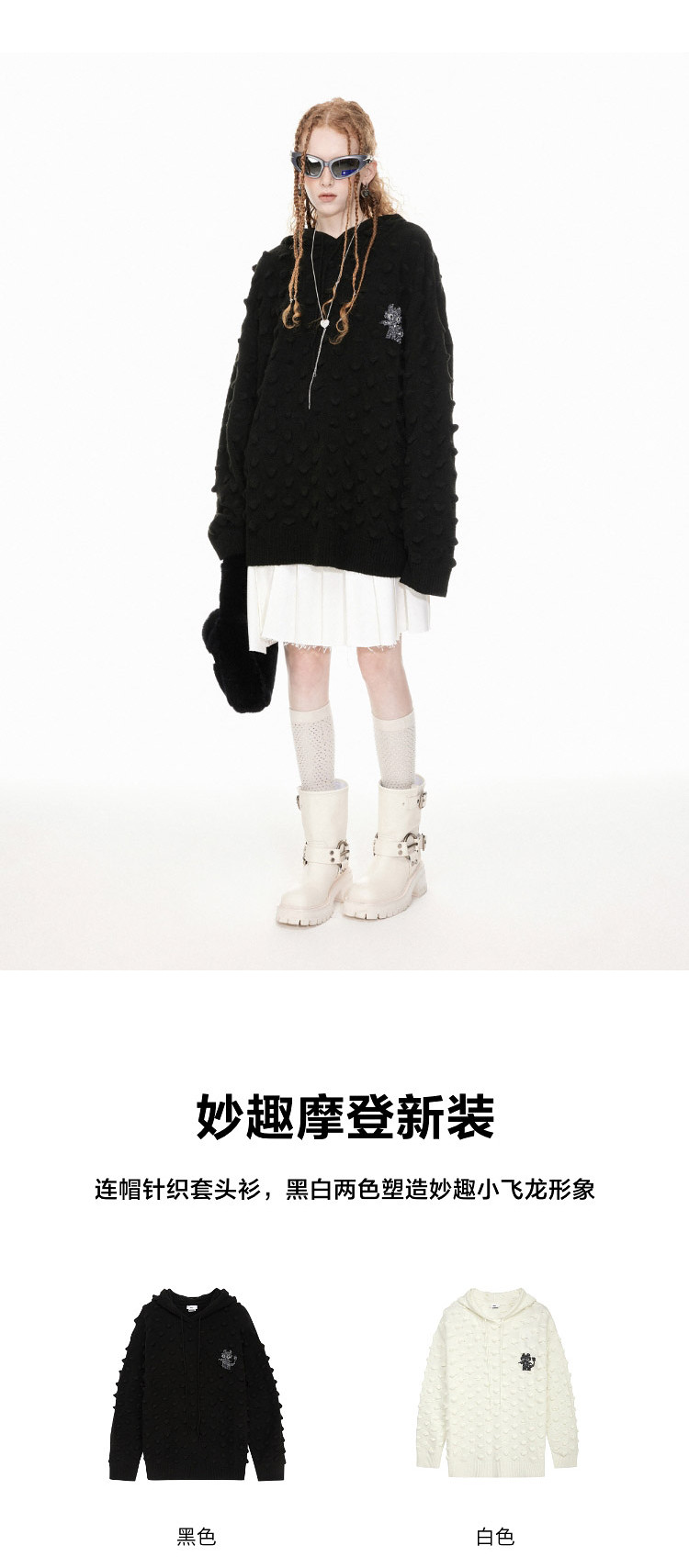地素 驯龙高手联名 针织连帽套头衫春秋趣妙摩登小龙刺绣 337931