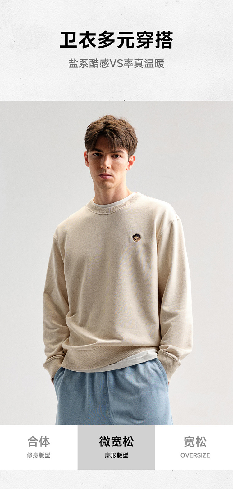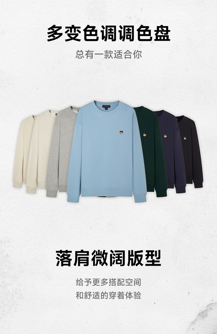 商品名称:卫衣小熊男装简约舒适时尚圆领卫衣春季宽松潮流休闲上衣男士 969217