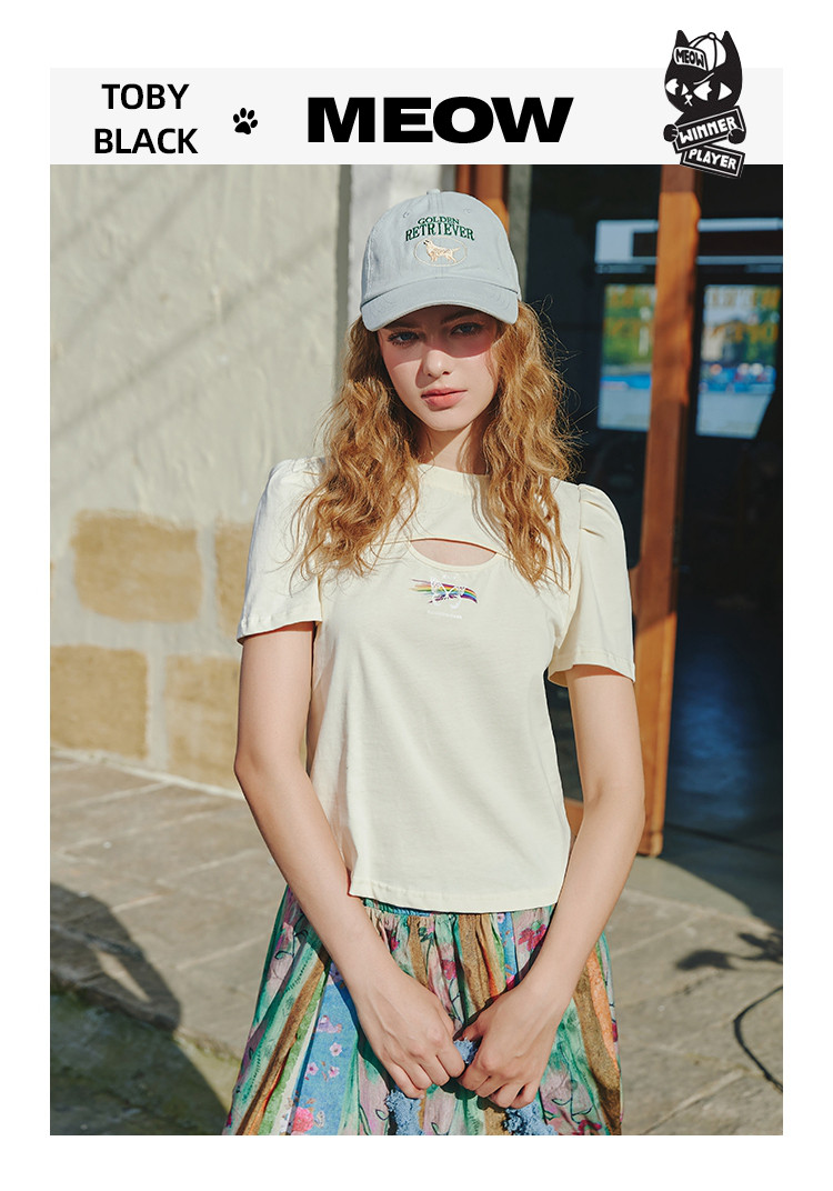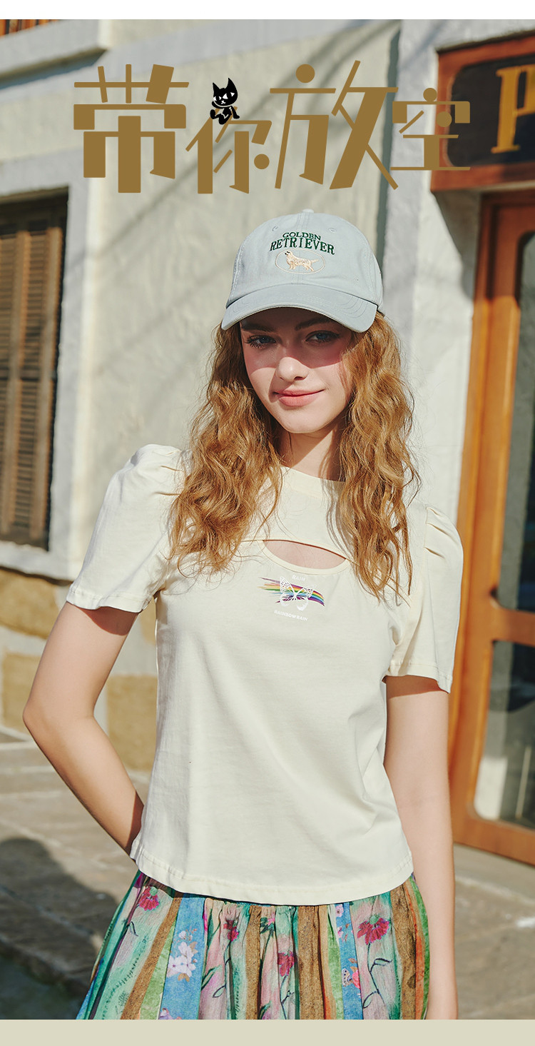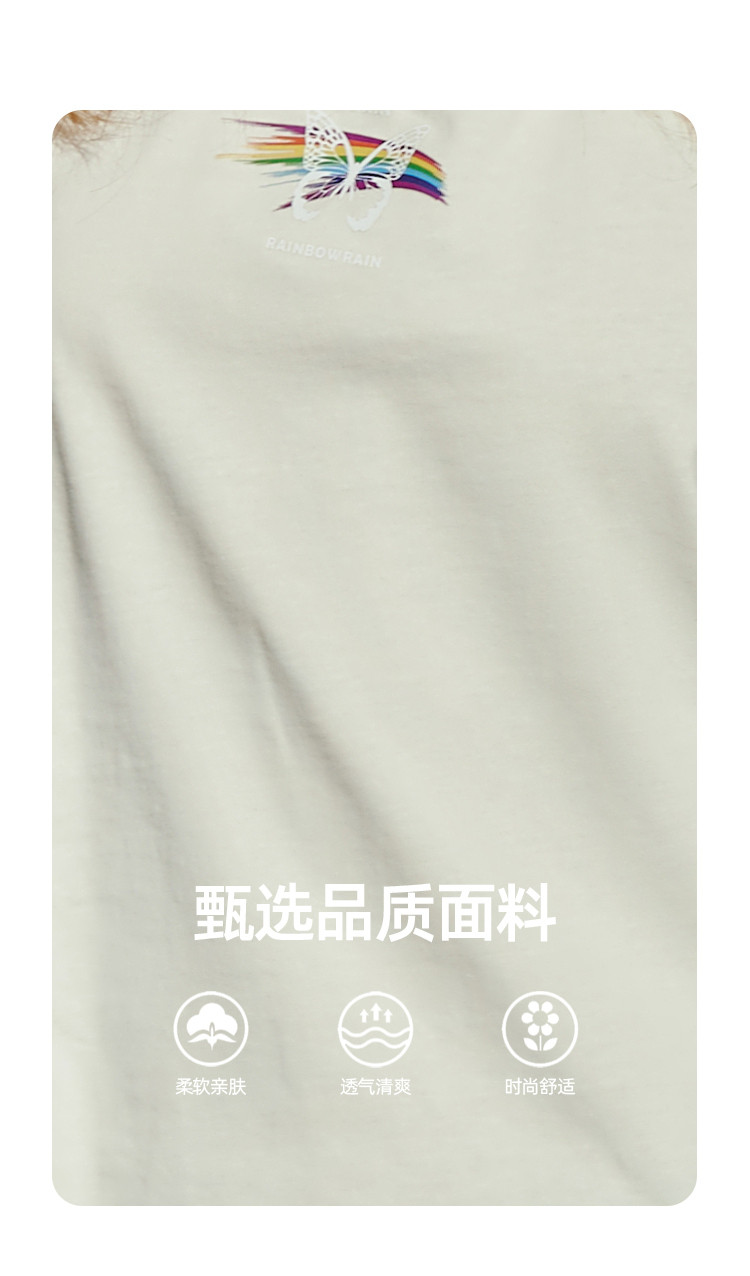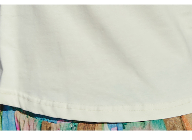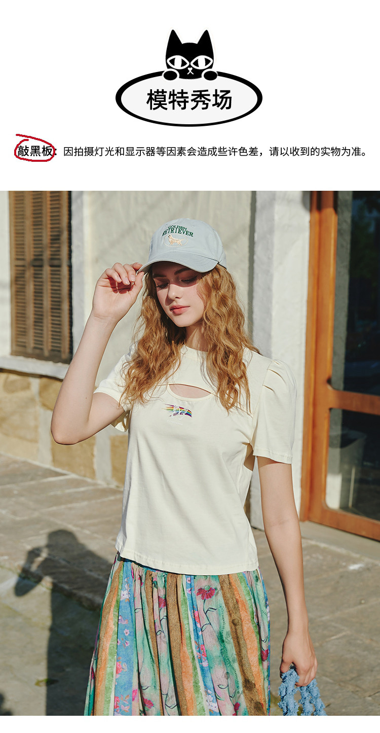 商品名称:【100%棉】简约印花镂空设计女式T恤夏季小清新短袖 063325