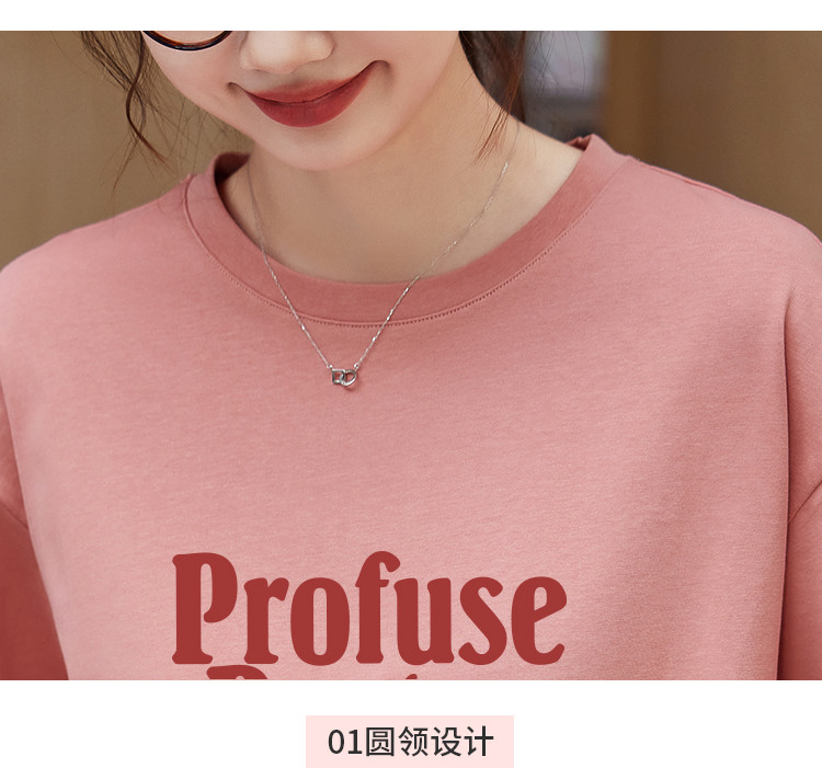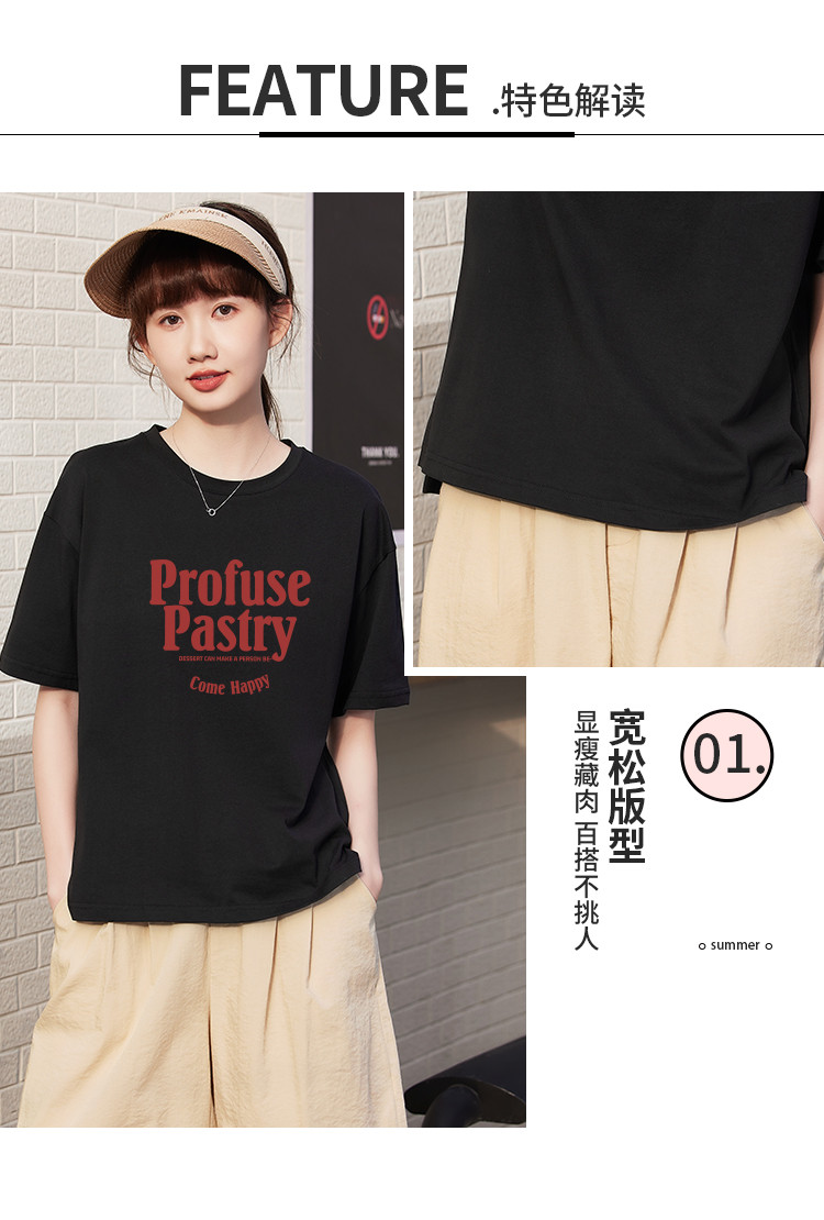 米子旗夏季圆领字母印花女式大码T恤侧边开叉设计宽松短袖上衣 744026