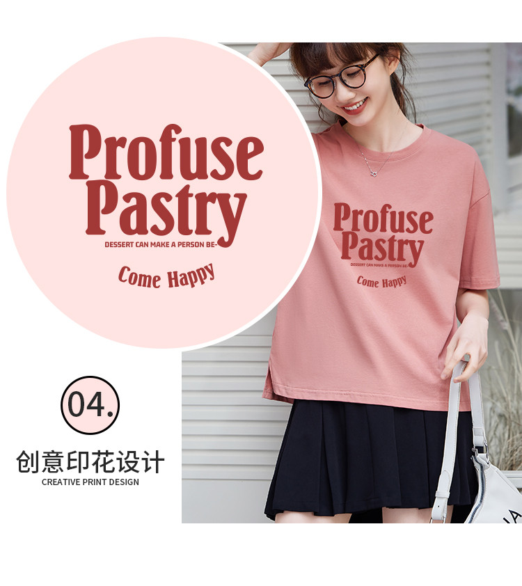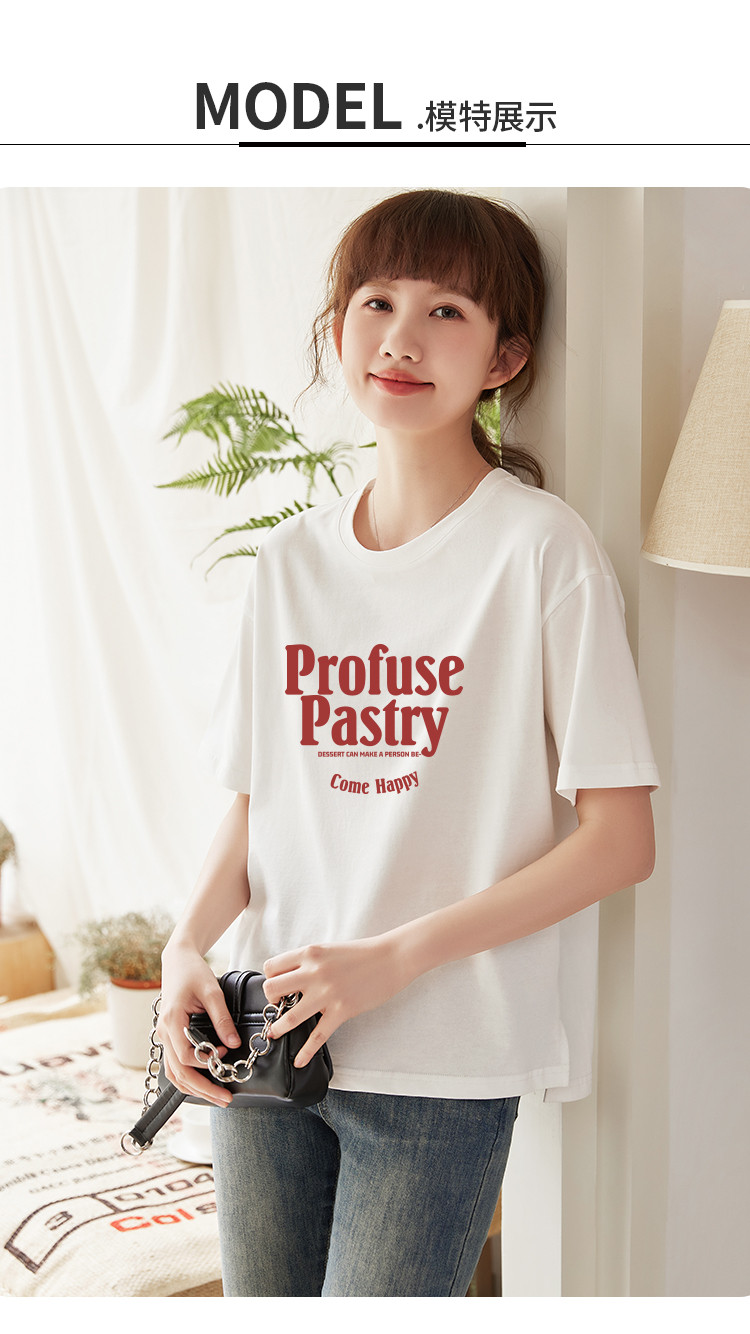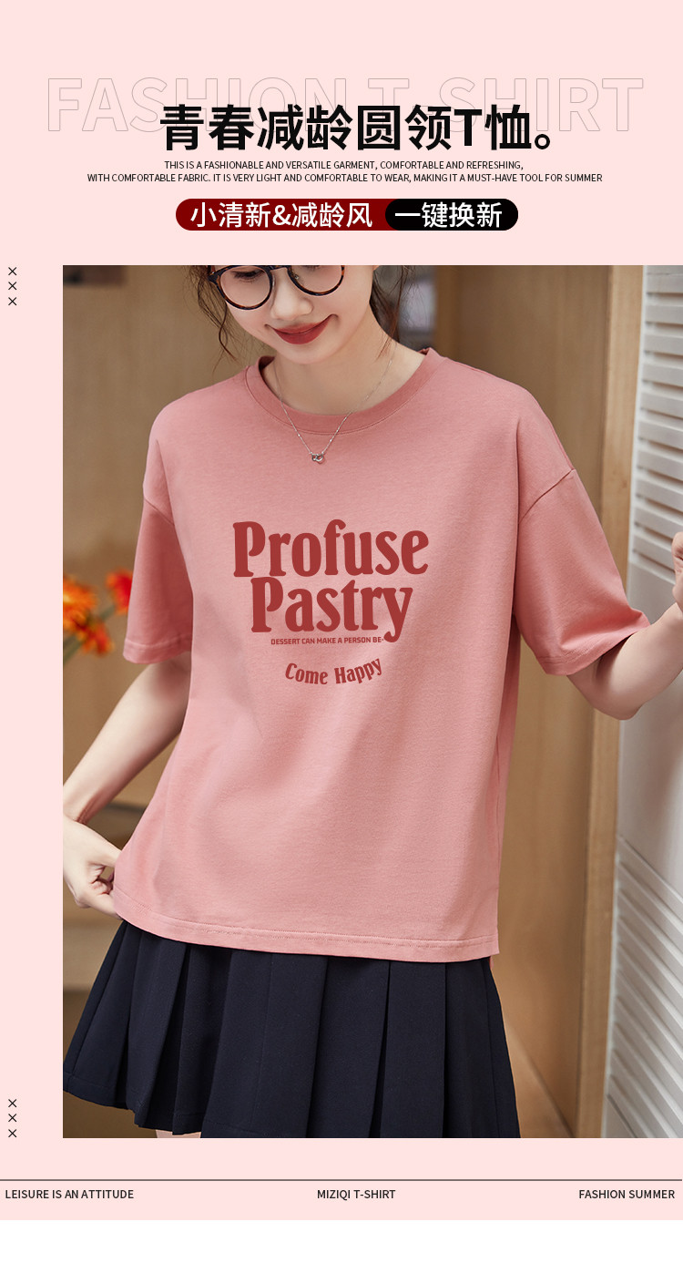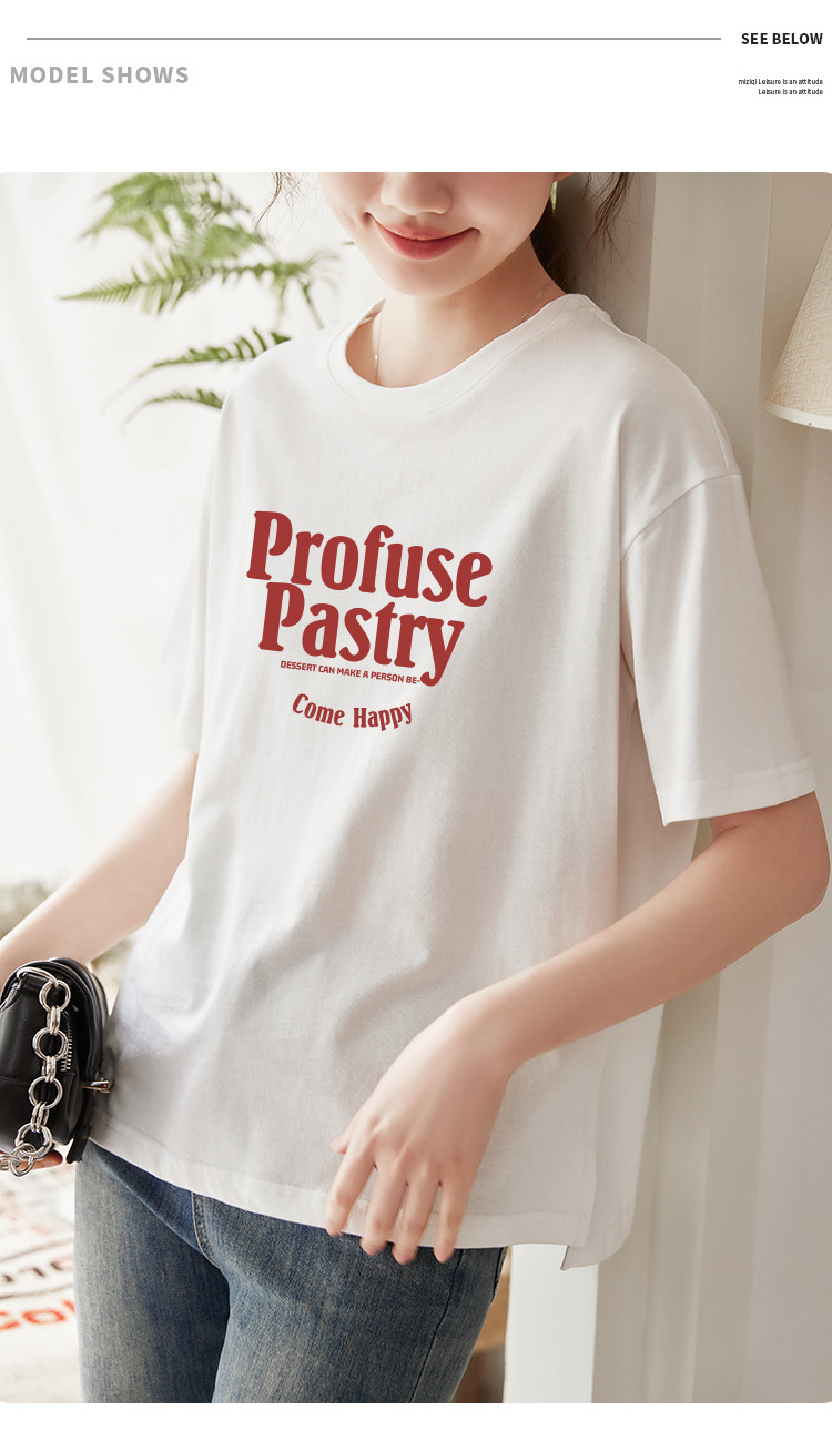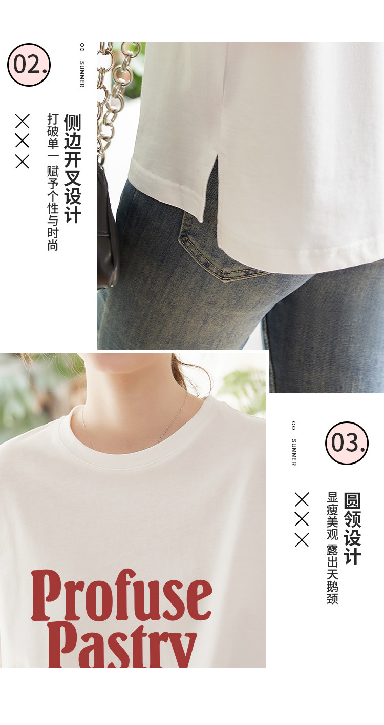 商品名称:米子旗夏季圆领字母印花女式大码T恤侧边开叉设计宽松短袖上衣 744026
