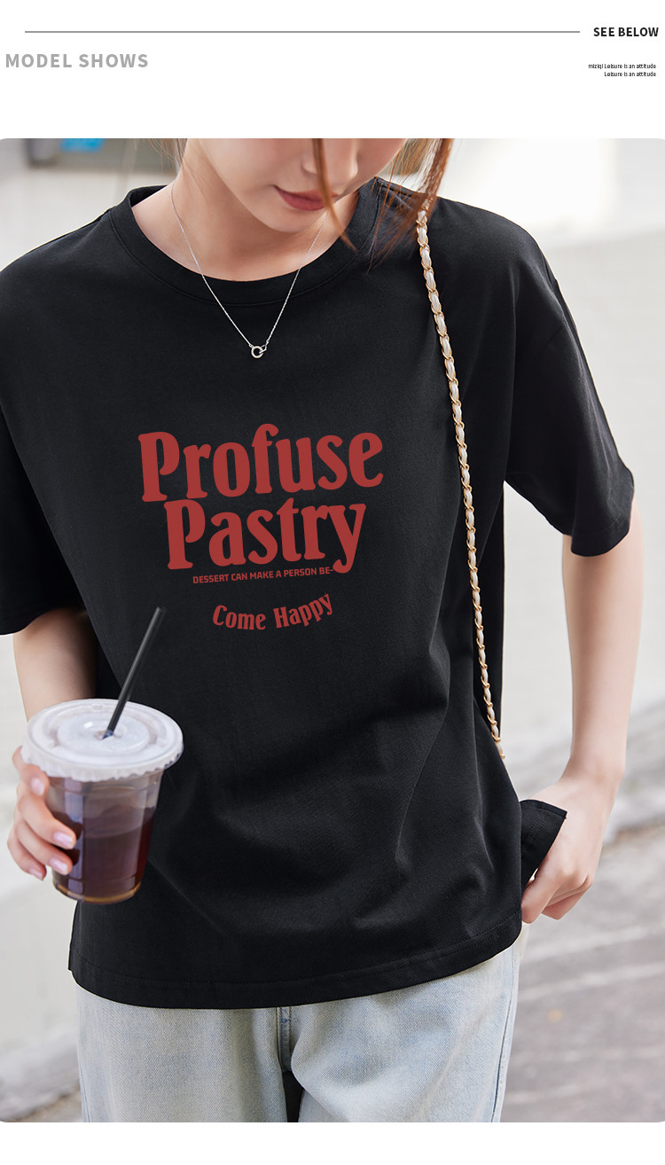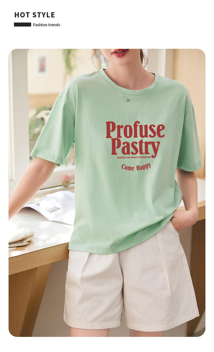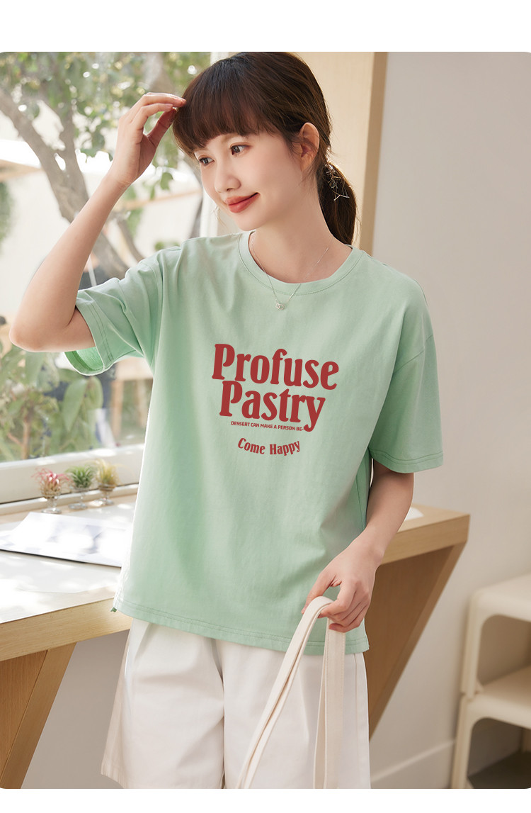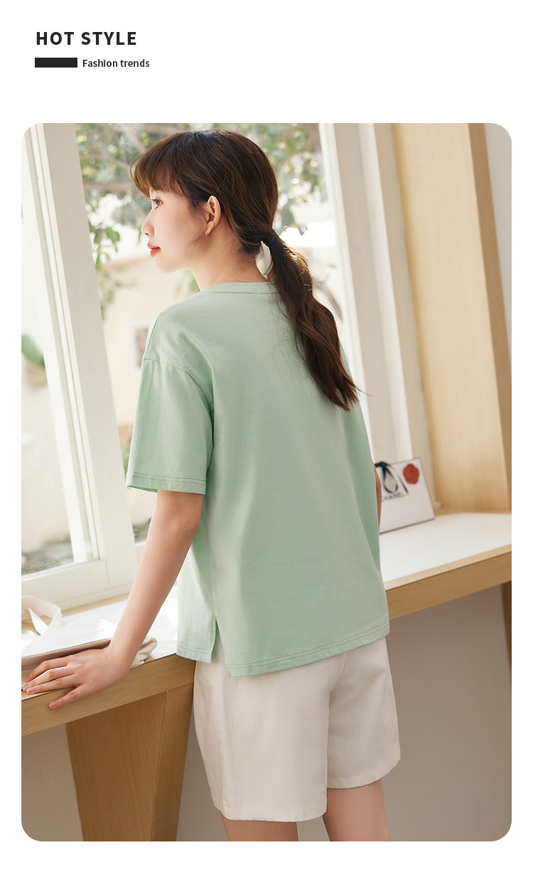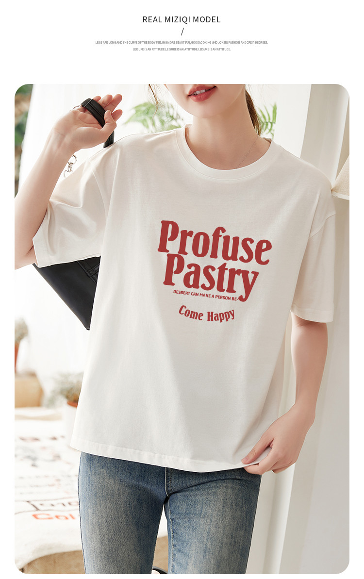 商品名称:米子旗夏季圆领字母印花女式大码T恤侧边开叉设计宽松短袖上衣 744026
