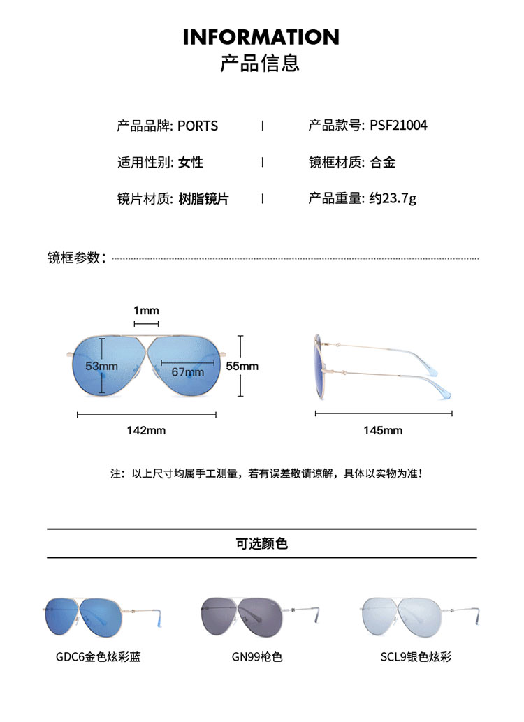 商品名称:PORTS女款日常时尚潮流金属太阳镜PSF21004 400202
