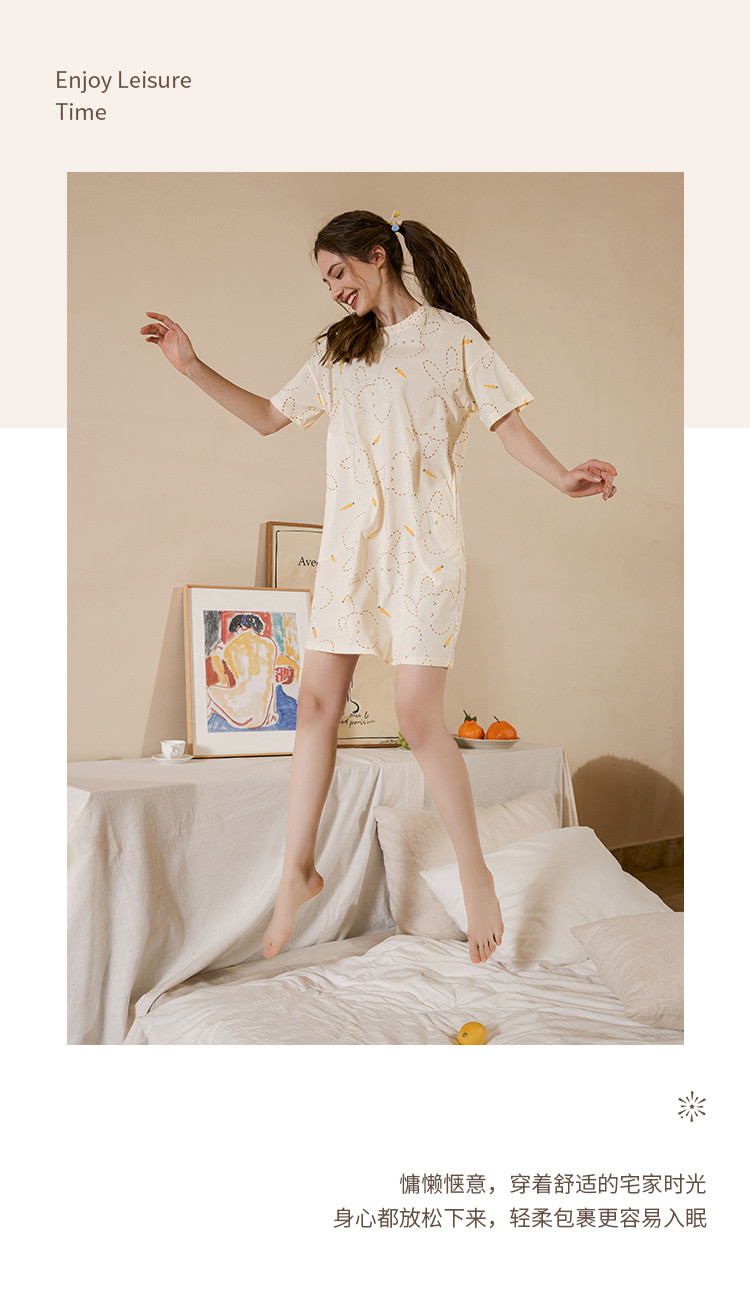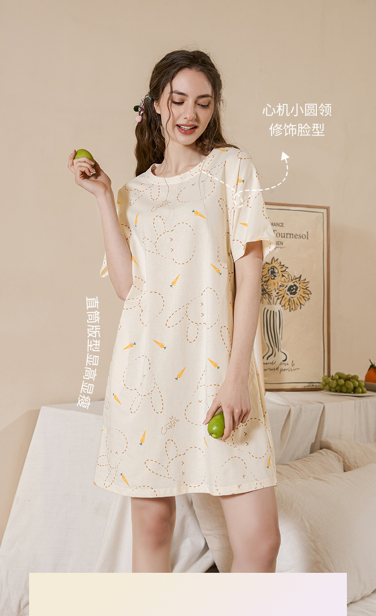 商品名称:甜美卡通扎染短袖睡裙女士可外穿家居服睡衣夏季薄款舒适爽棉裙子 347595