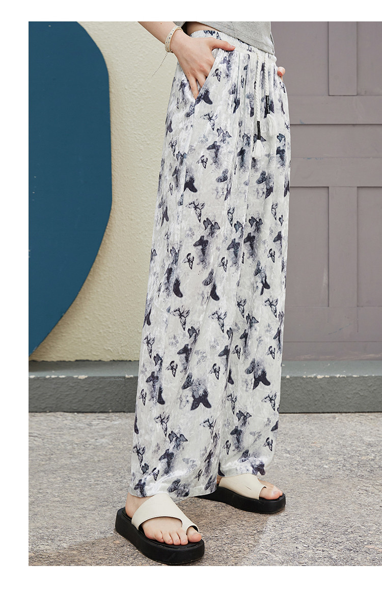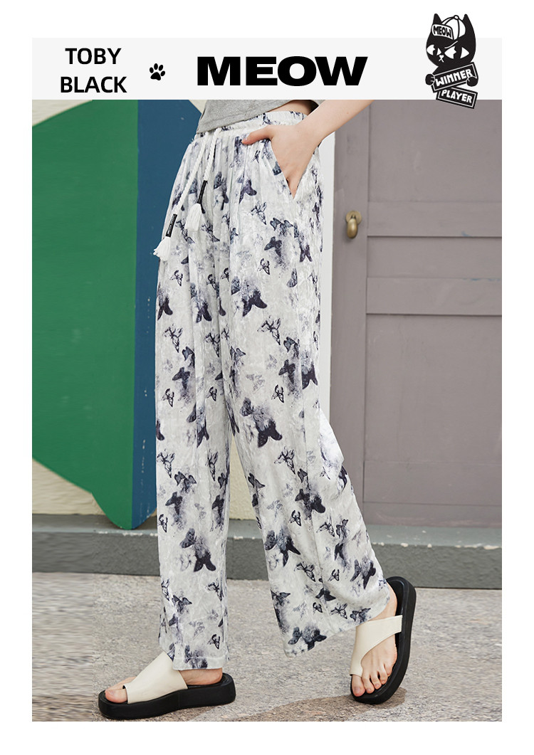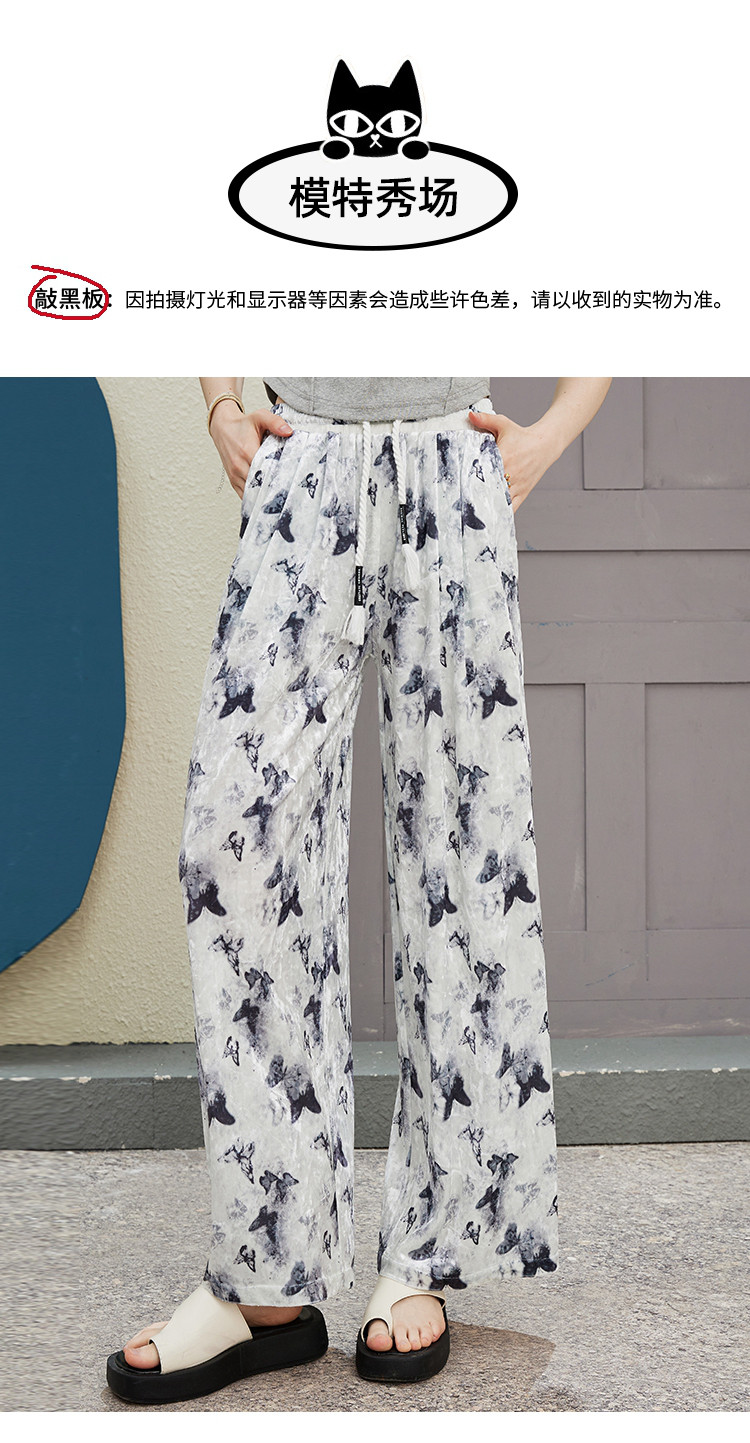 水墨新中式国风休闲女式休闲裤夏季高腰个性宽松阔腿裤 779741