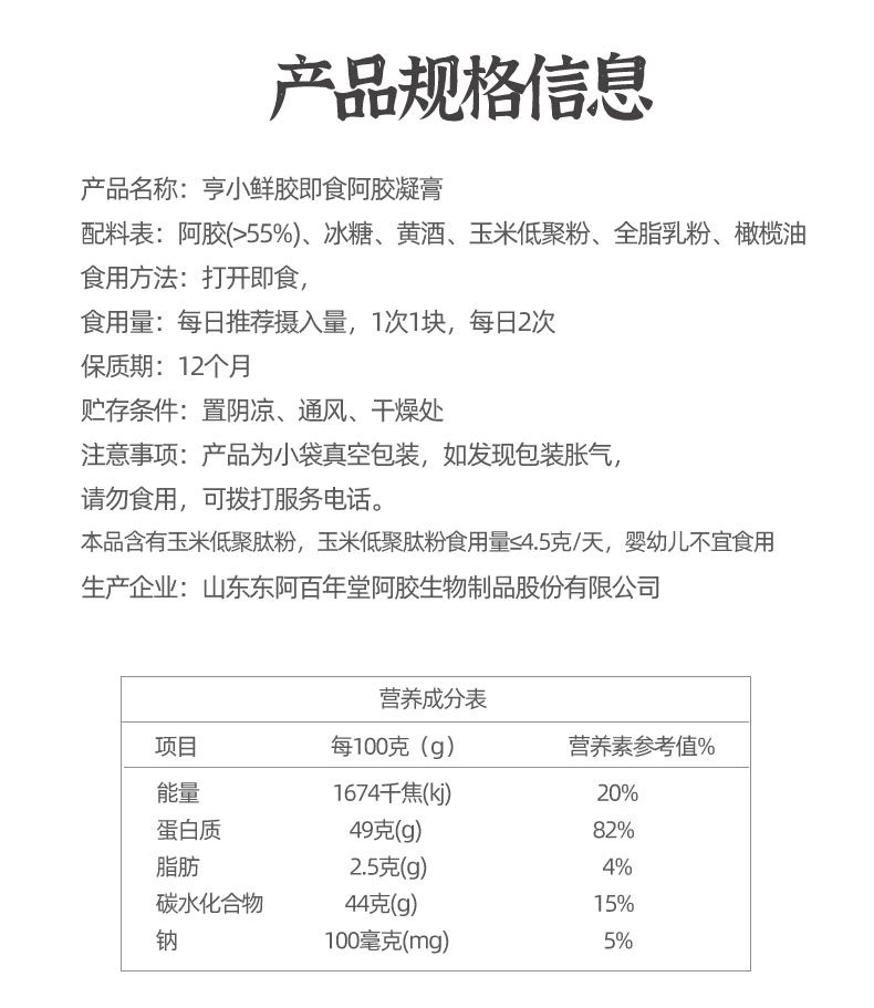 百年堂02-即食亨小鲜胶(简装款)100g(5g*20片/盒)