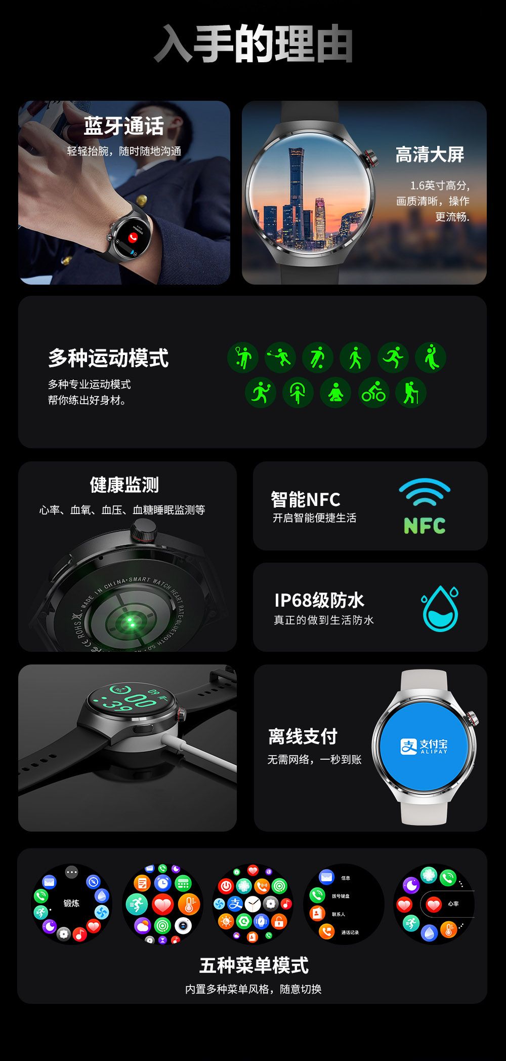 商品名称:佐德博兹适用于华为商务大屏健康蓝牙音乐NFC离线支付智能手表