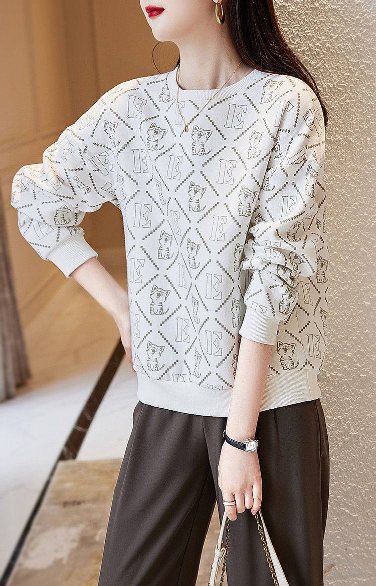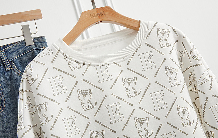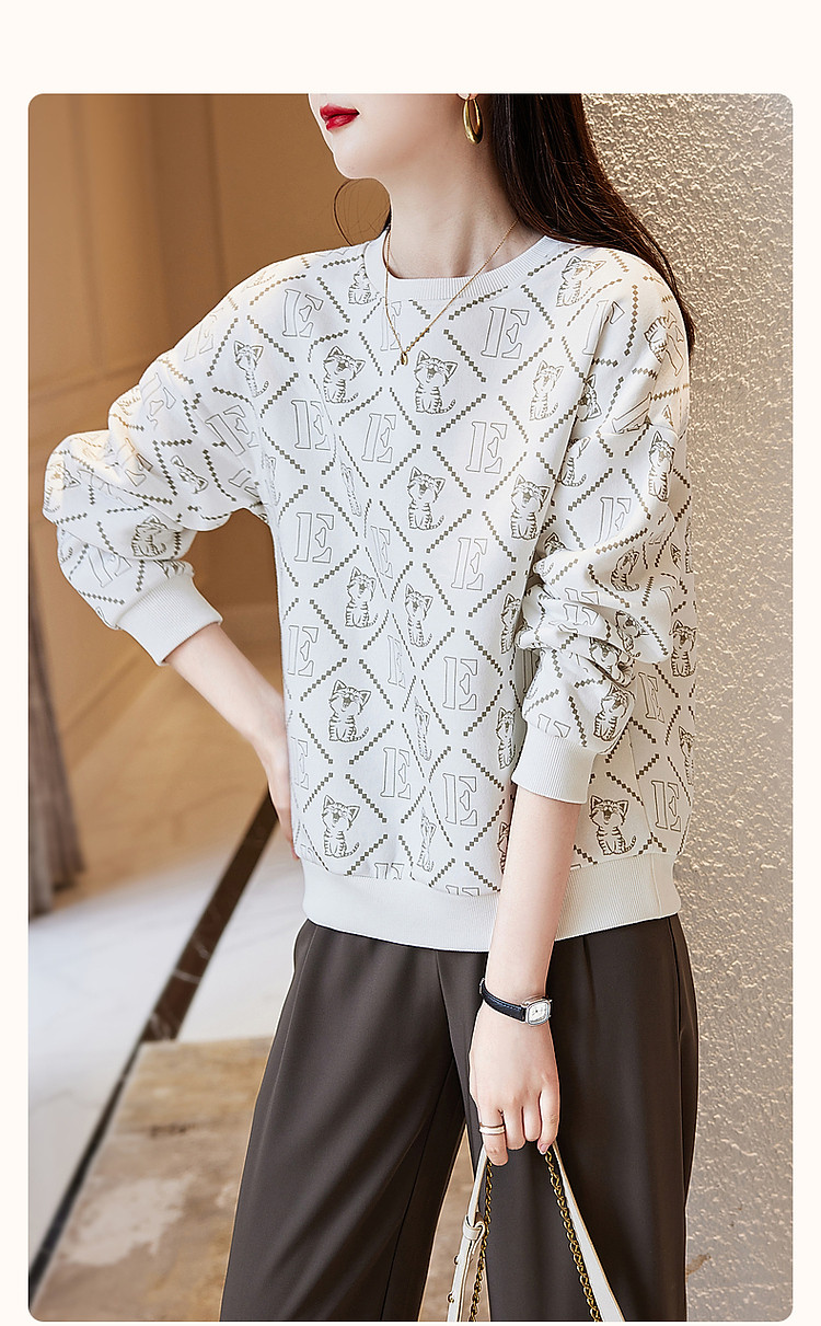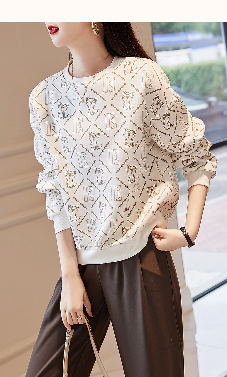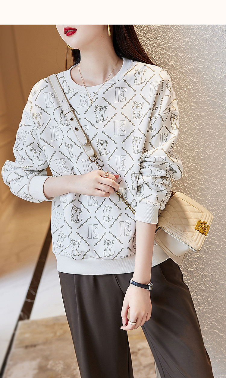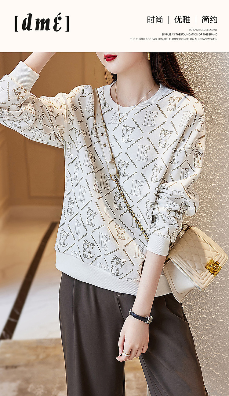 商品名称:【棉质印花卫衣】春秋圆领宽松落肩长袖微弹卫衣女 391681