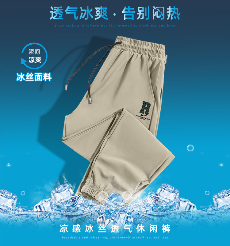商品名称:【冰感透气】夏季男士冰丝薄款束脚裤美式休闲男生户外运动休闲裤 661651