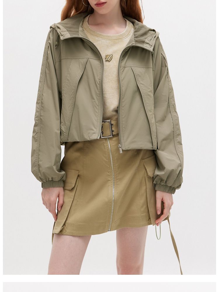 商品名称:【UPF50+】夏季百搭防晒衣抽绳连帽宽松短外套女 013850