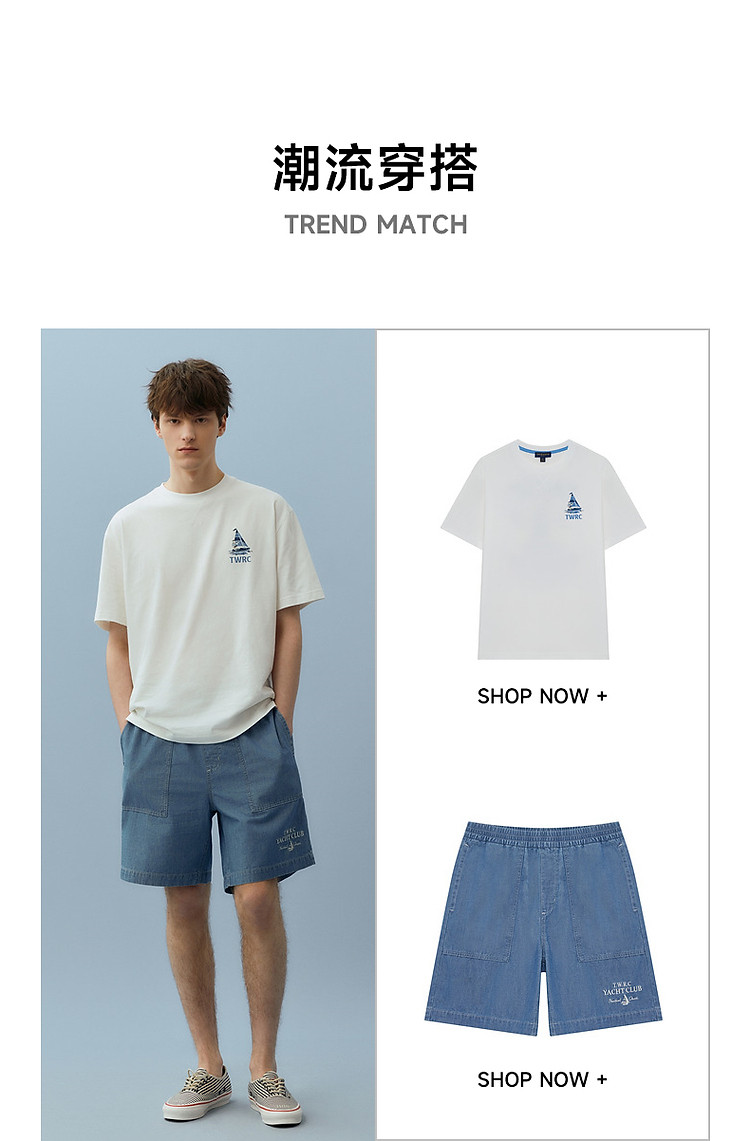 商品名称:小熊男装休闲简约时尚潮流牛仔短裤夏季直筒宽松美式五分裤子 378497