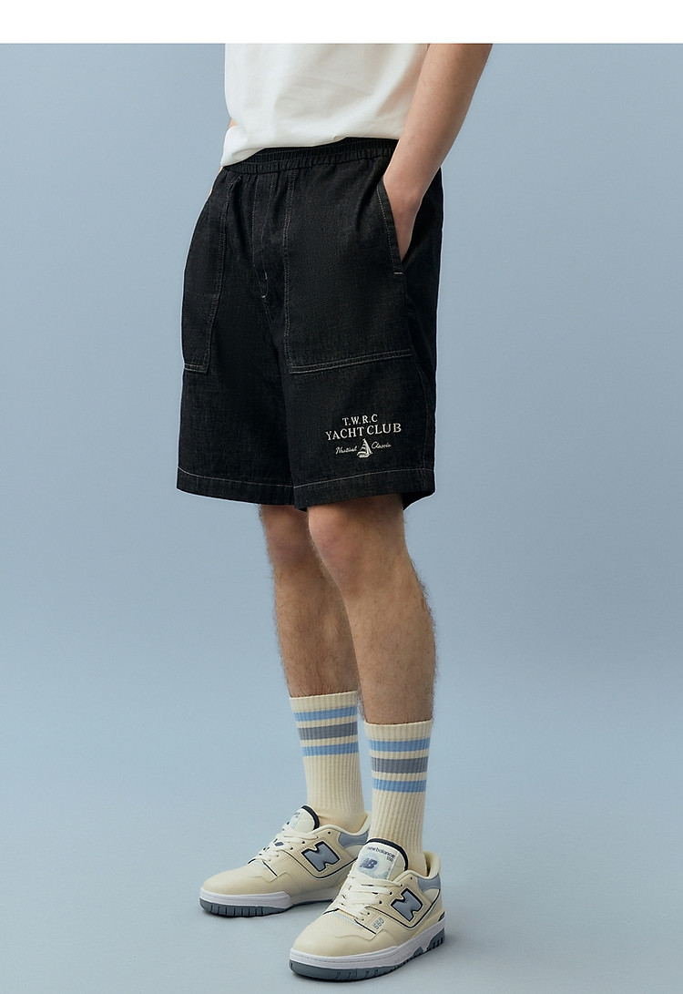 小熊男装休闲简约时尚潮流牛仔短裤夏季直筒宽松美式五分裤子 378497