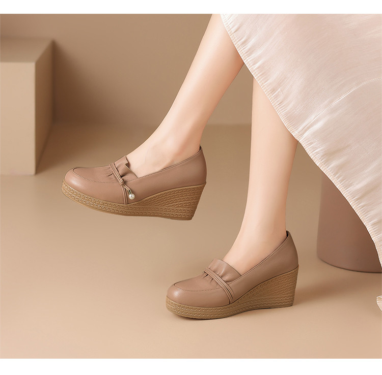 商品名称:【头层牛皮】母亲节妈妈鞋一脚蹬女鞋高级感皮鞋女高跟鞋女单鞋女 617984