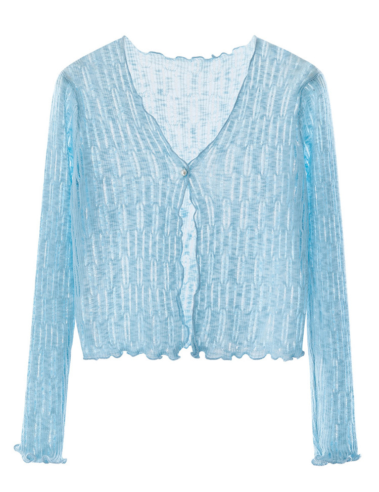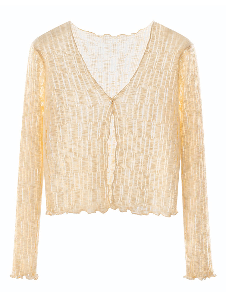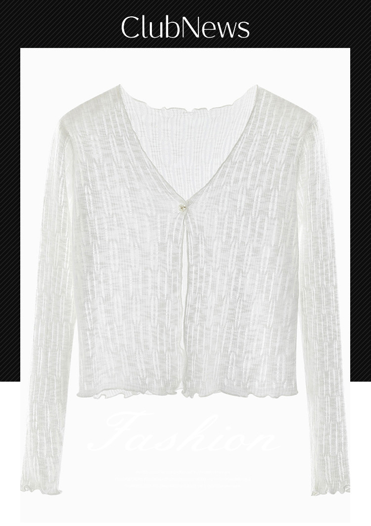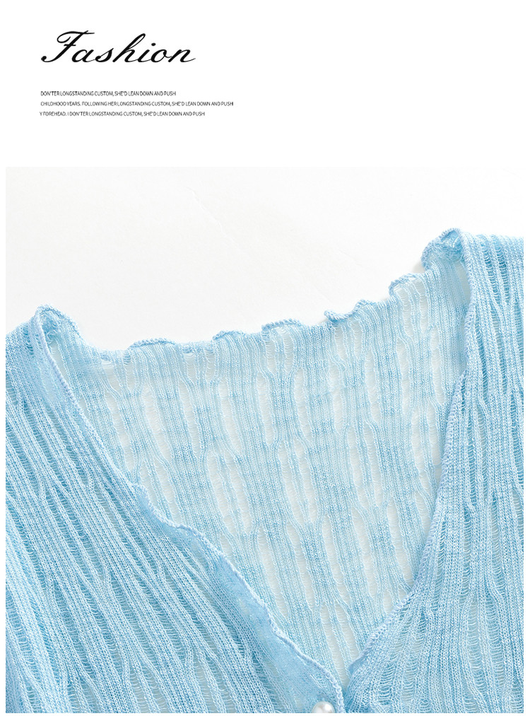 商品名称:V领薄款针织开衫女外搭空调衫罩衫镂空针织衫女 490435