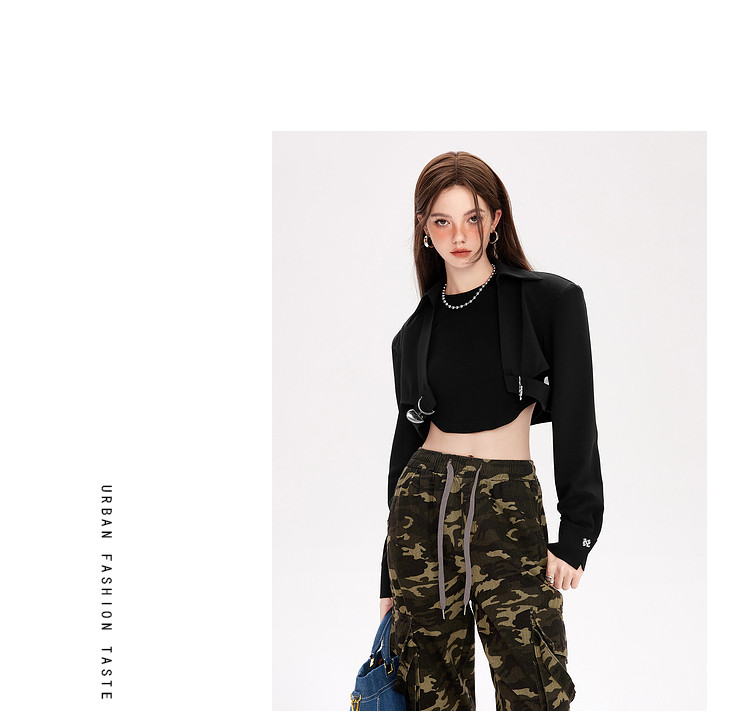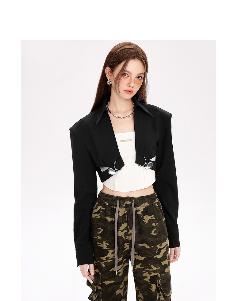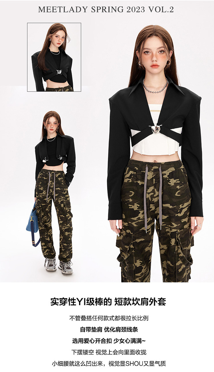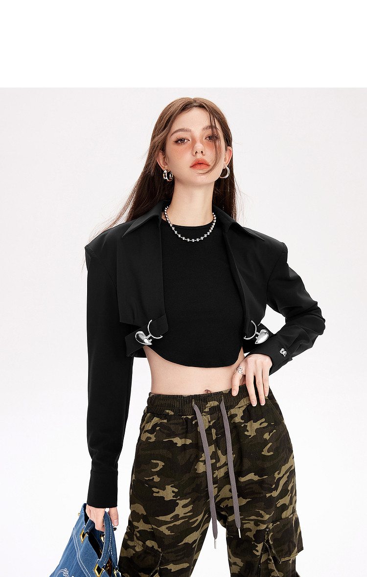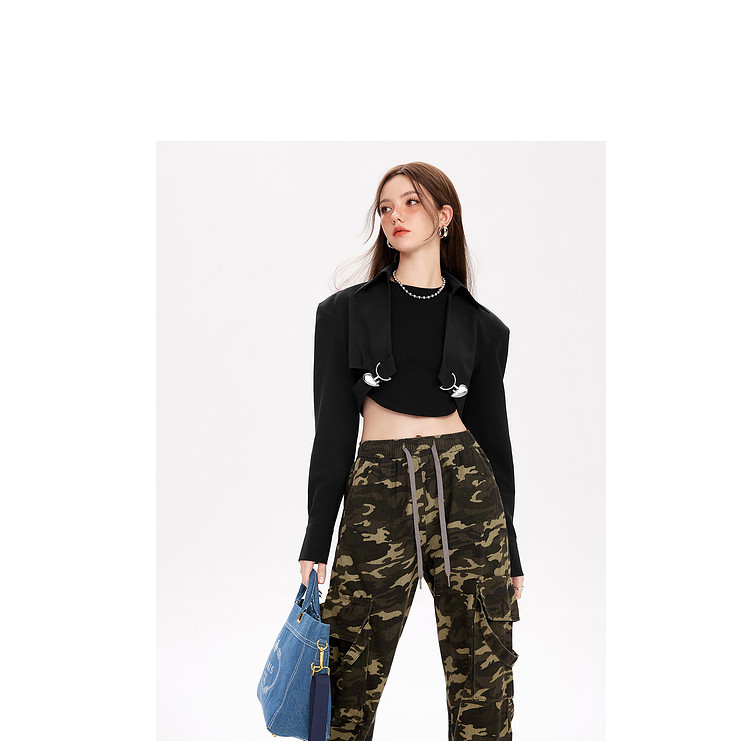 商品名称:24秋装高级短款垫肩外套女立体金属廓形上衣 455124