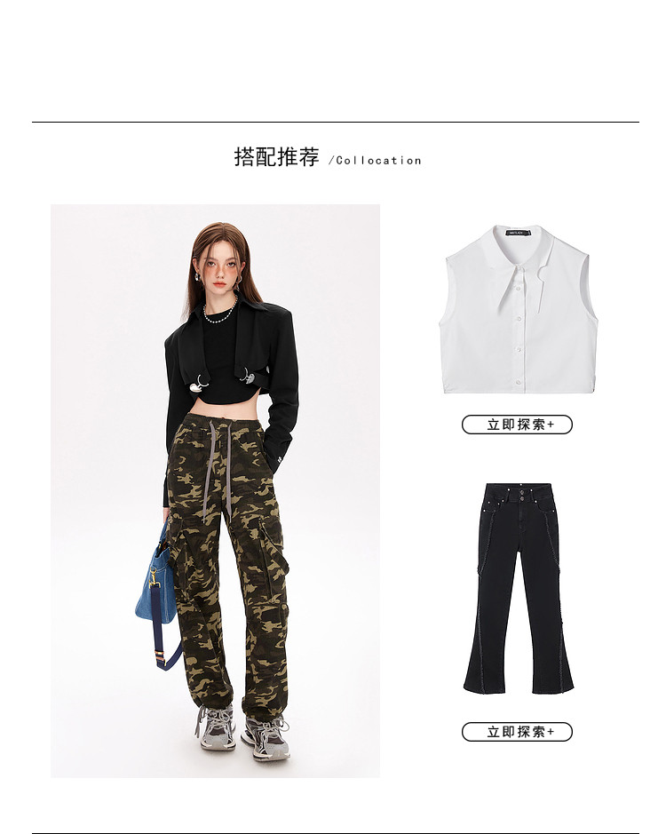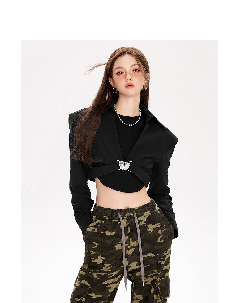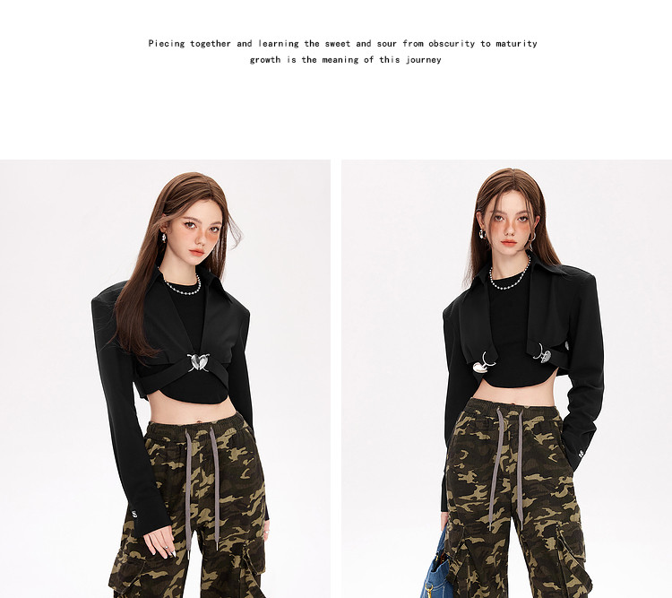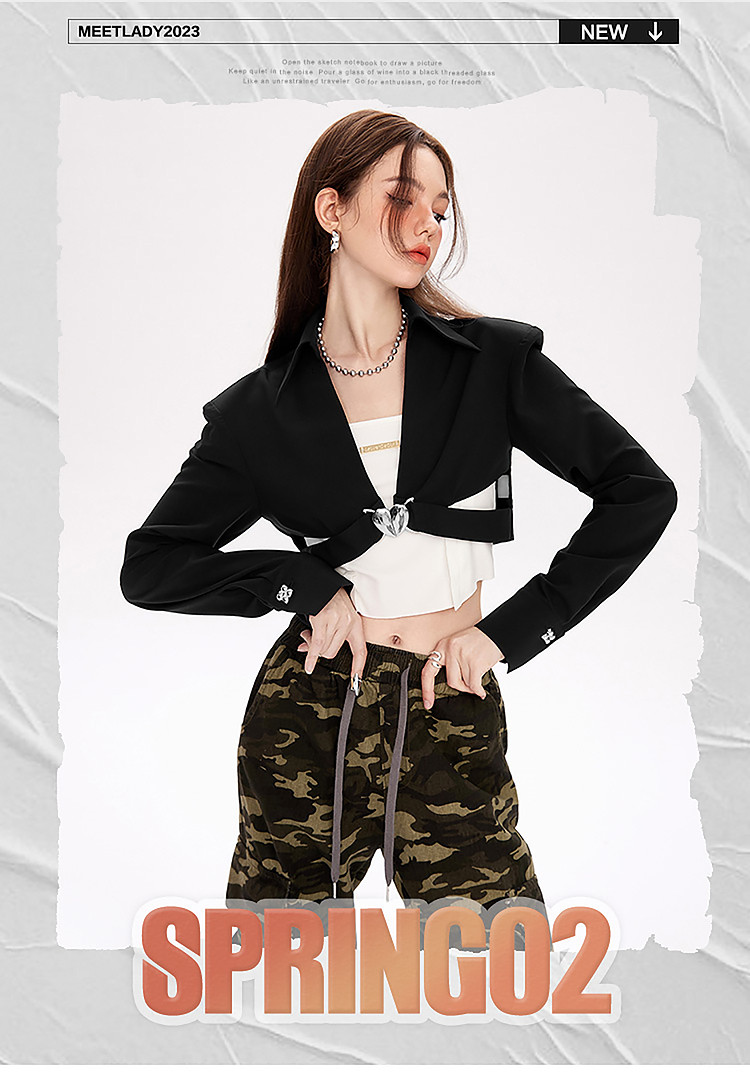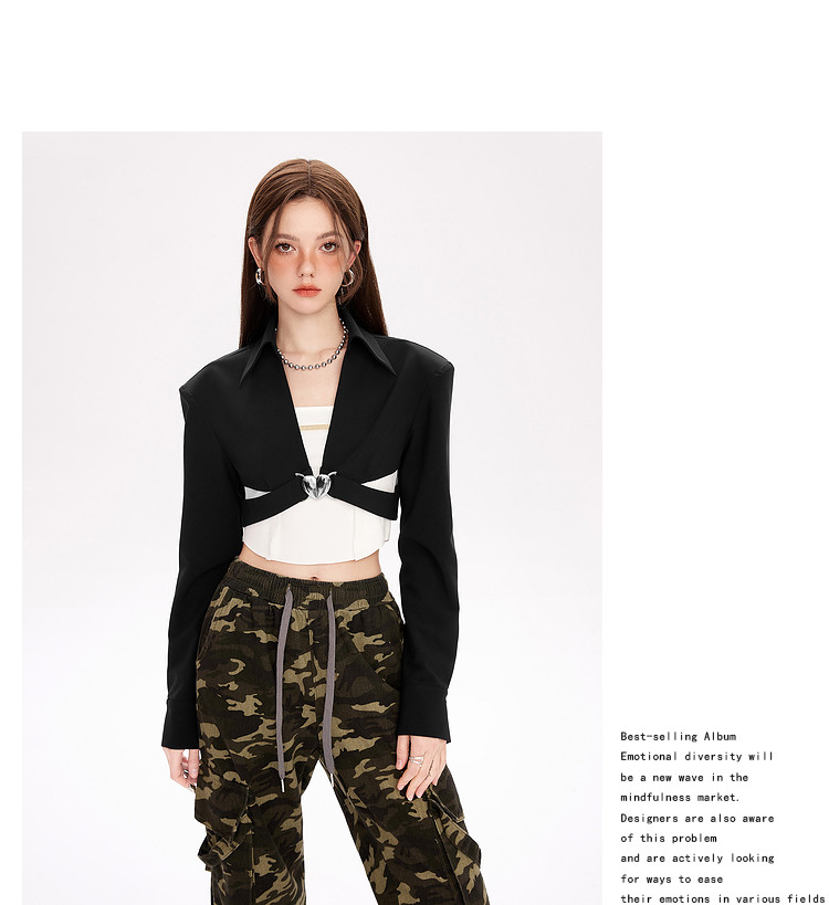 商品名称:24秋装高级短款垫肩外套女立体金属廓形上衣 455124