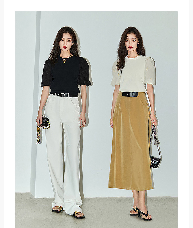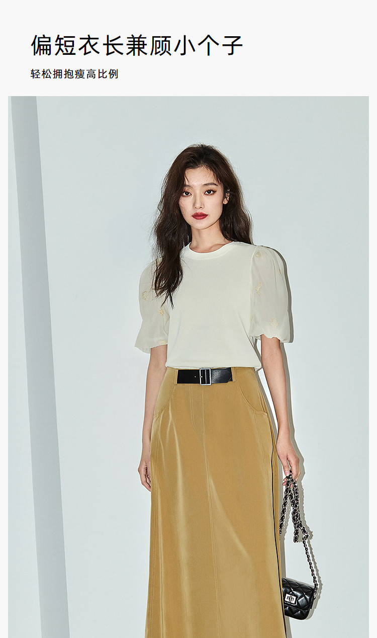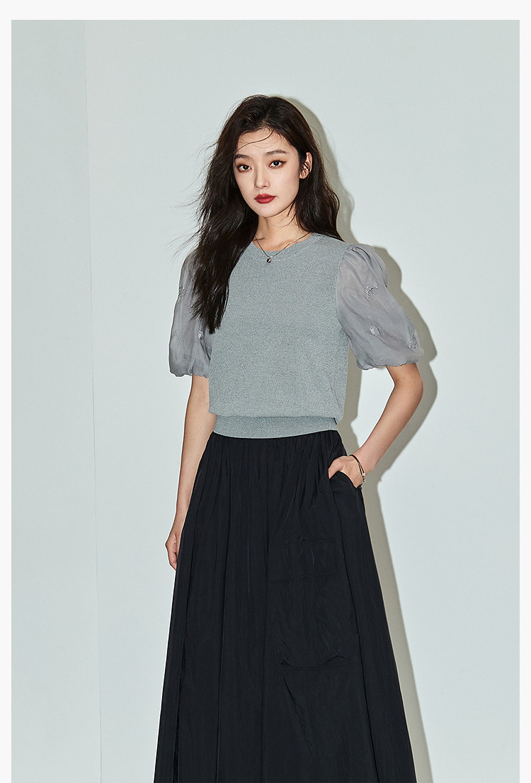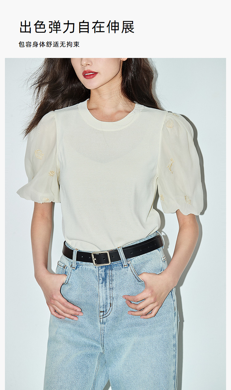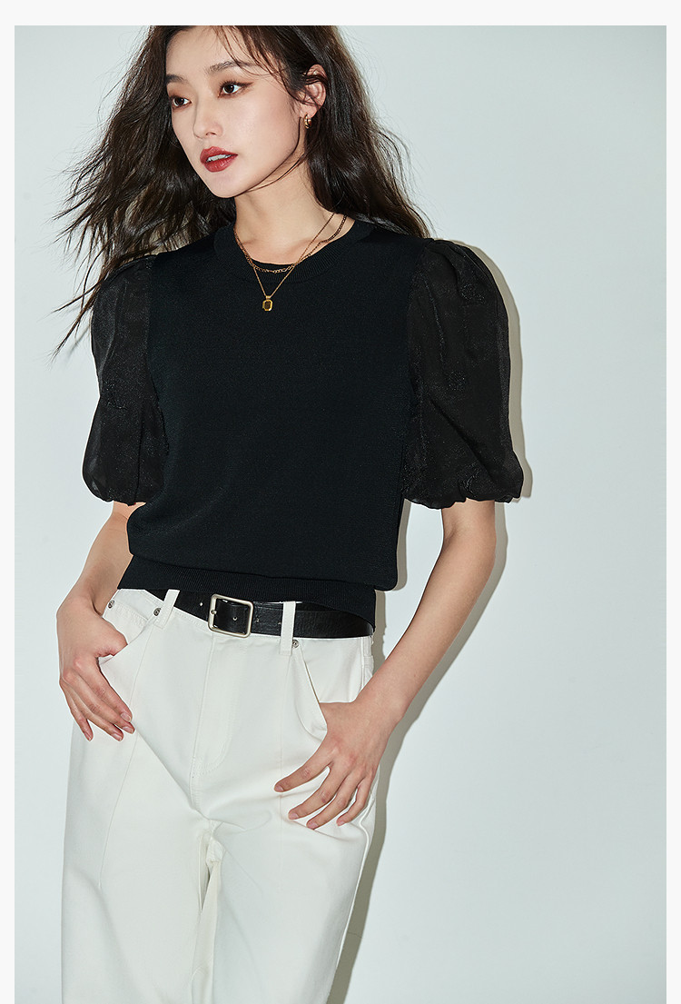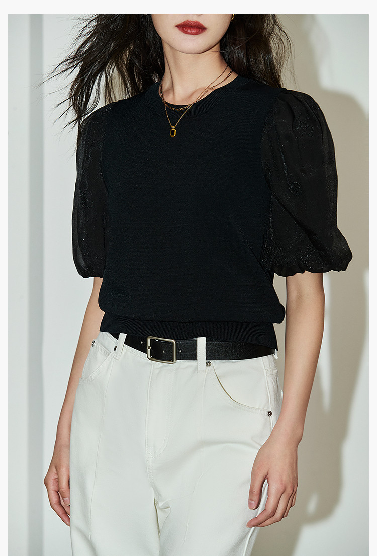 商品名称:【泡泡袖】春季针织短袖女法式优雅圆领基础百搭t恤短袖针织衫 029531