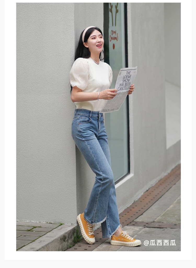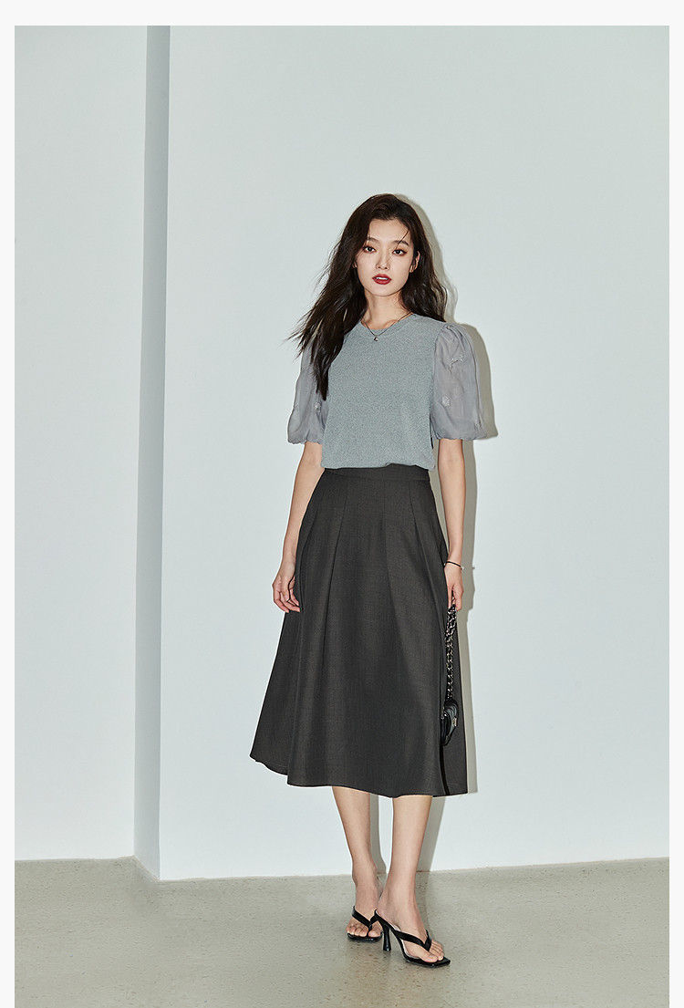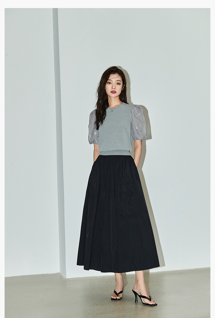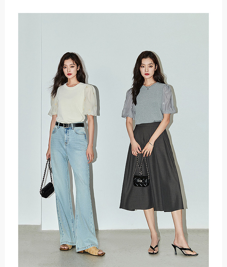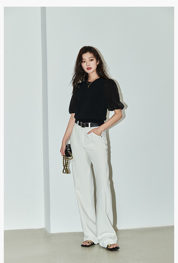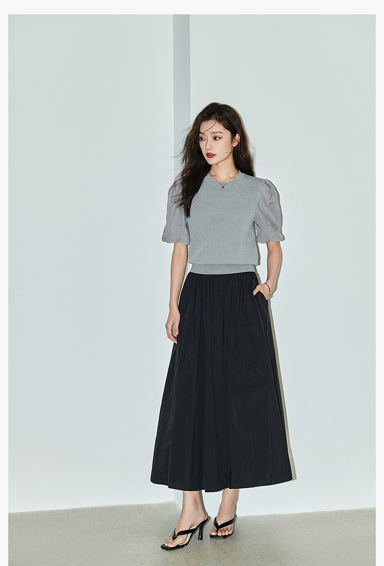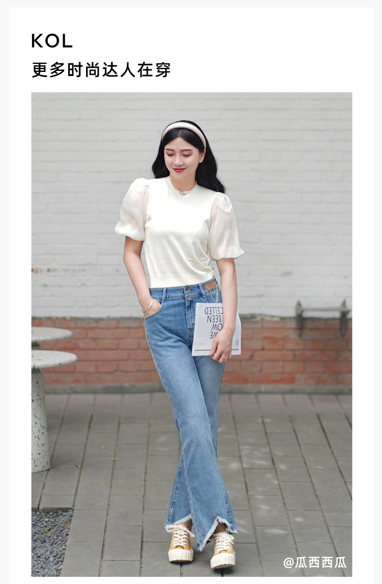 商品名称:【泡泡袖】春季针织短袖女法式优雅圆领基础百搭t恤短袖针织衫 029531
