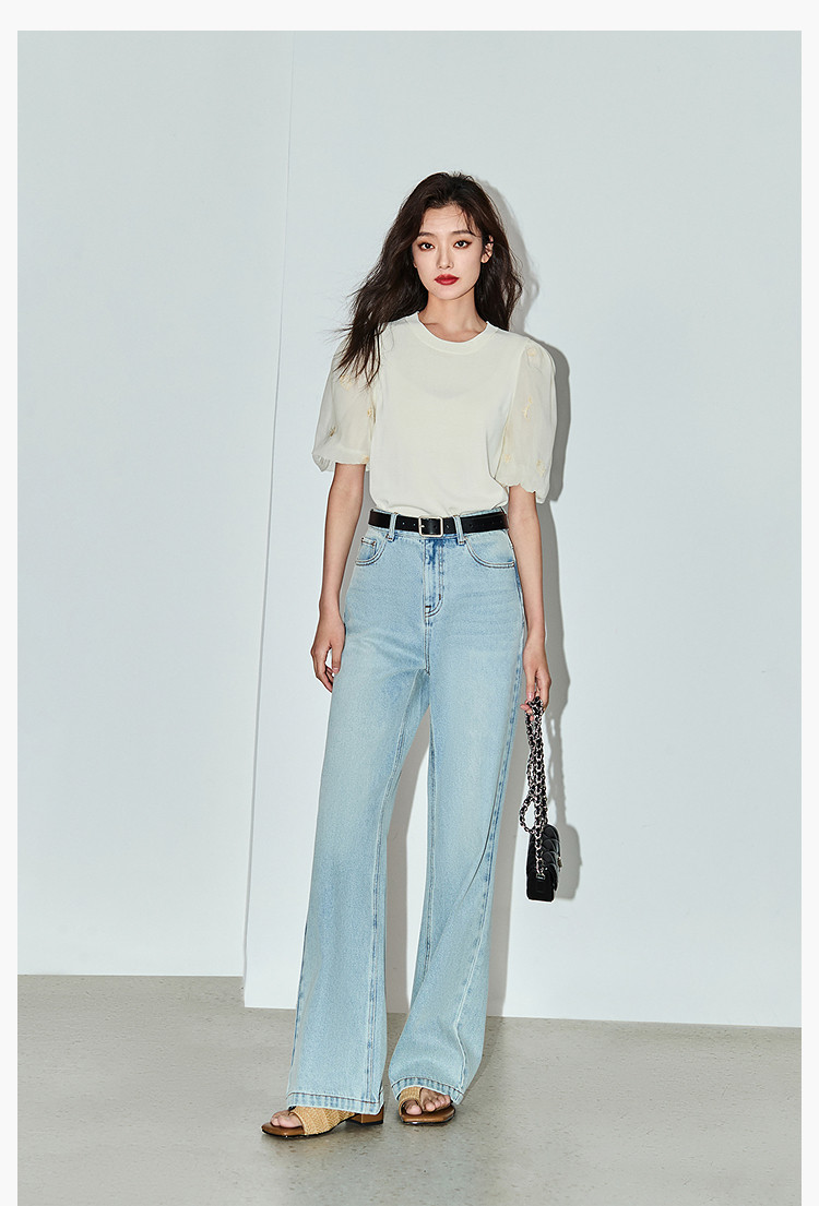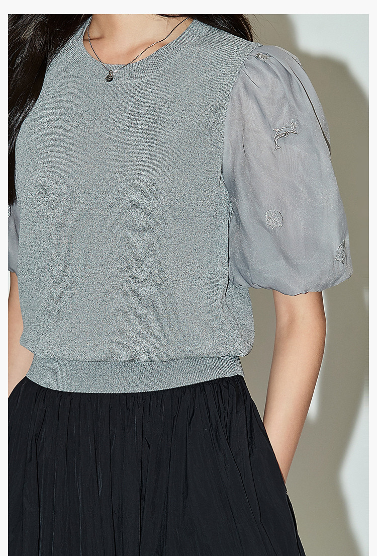 【泡泡袖】春季针织短袖女法式优雅圆领基础百搭t恤短袖针织衫 029531