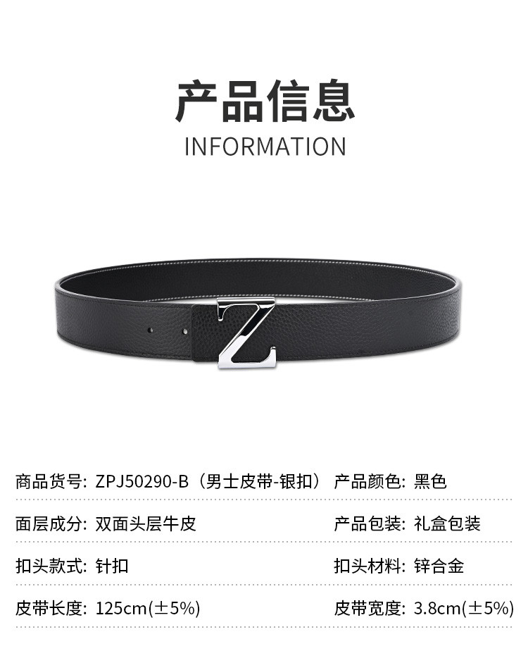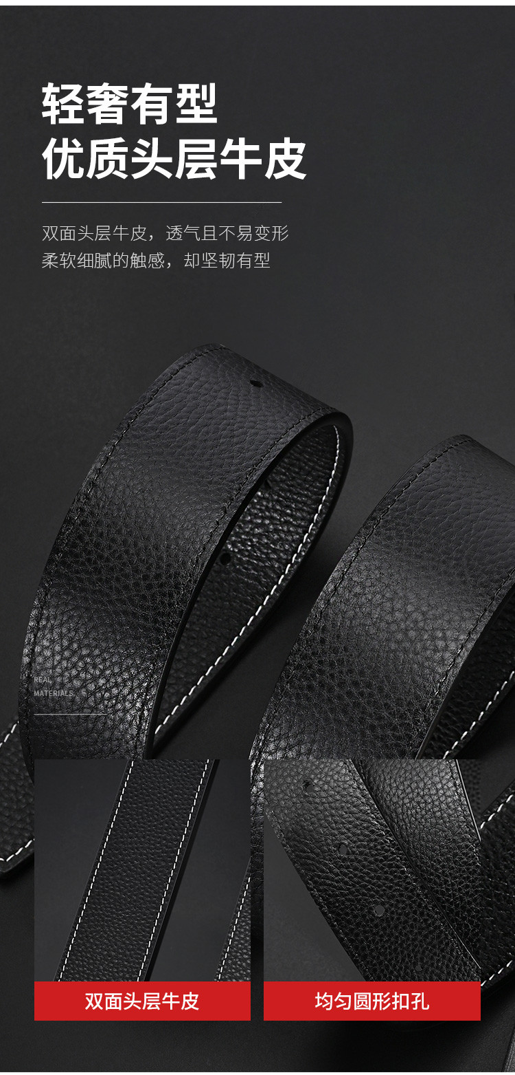 商品名称:【臻选好礼】本命年鸿运男士皮带奢侈大牌真皮合金扣头针扣腰带 533470