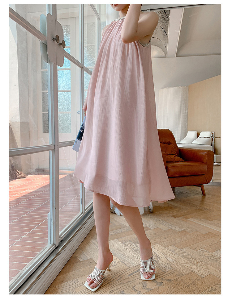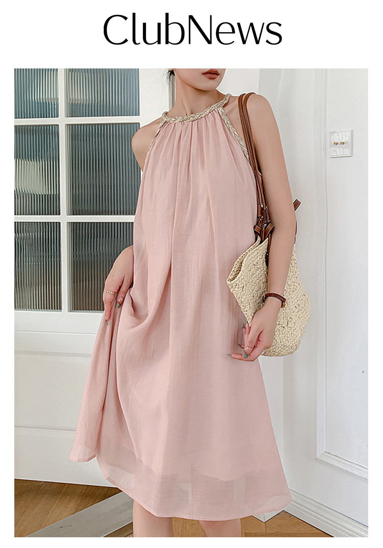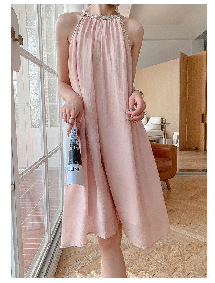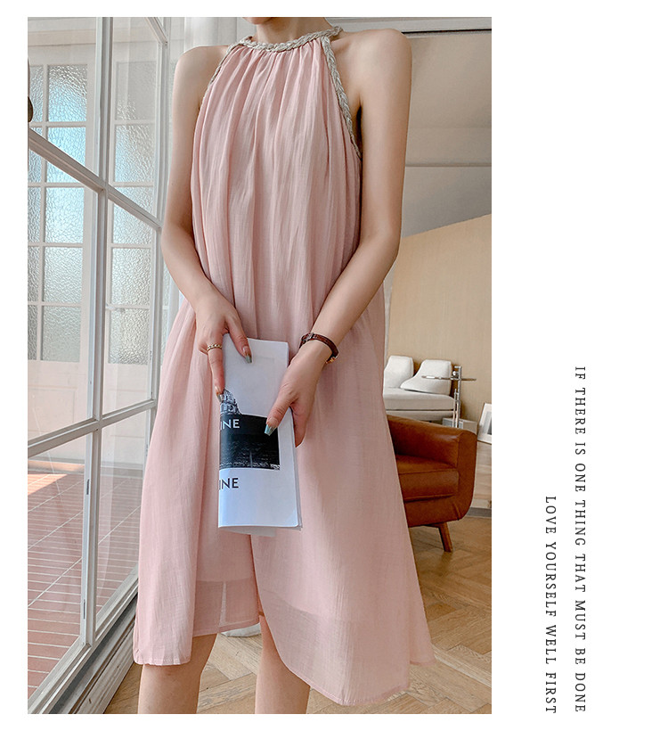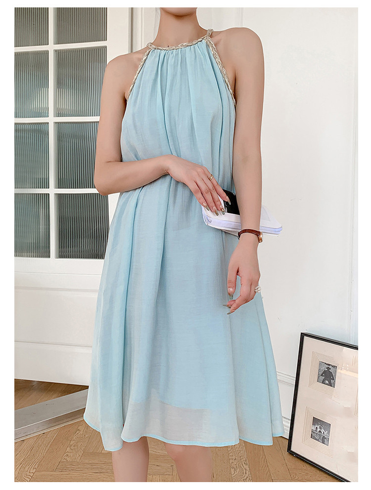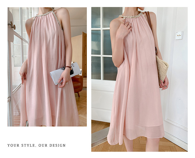 商品名称:温柔风挂脖连衣裙女小个子仙女宽松度假风裙子女 570307