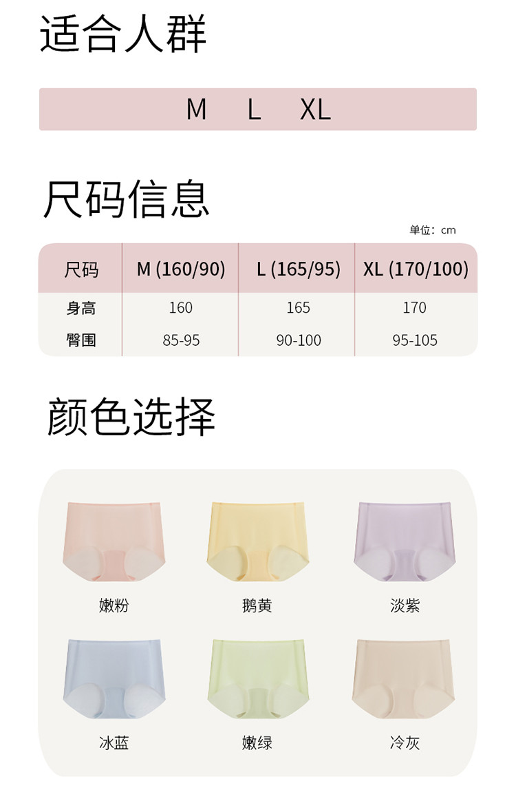 商品名称:【3条装】凉感抑菌中高腰三角内裤套装内衣女 399749