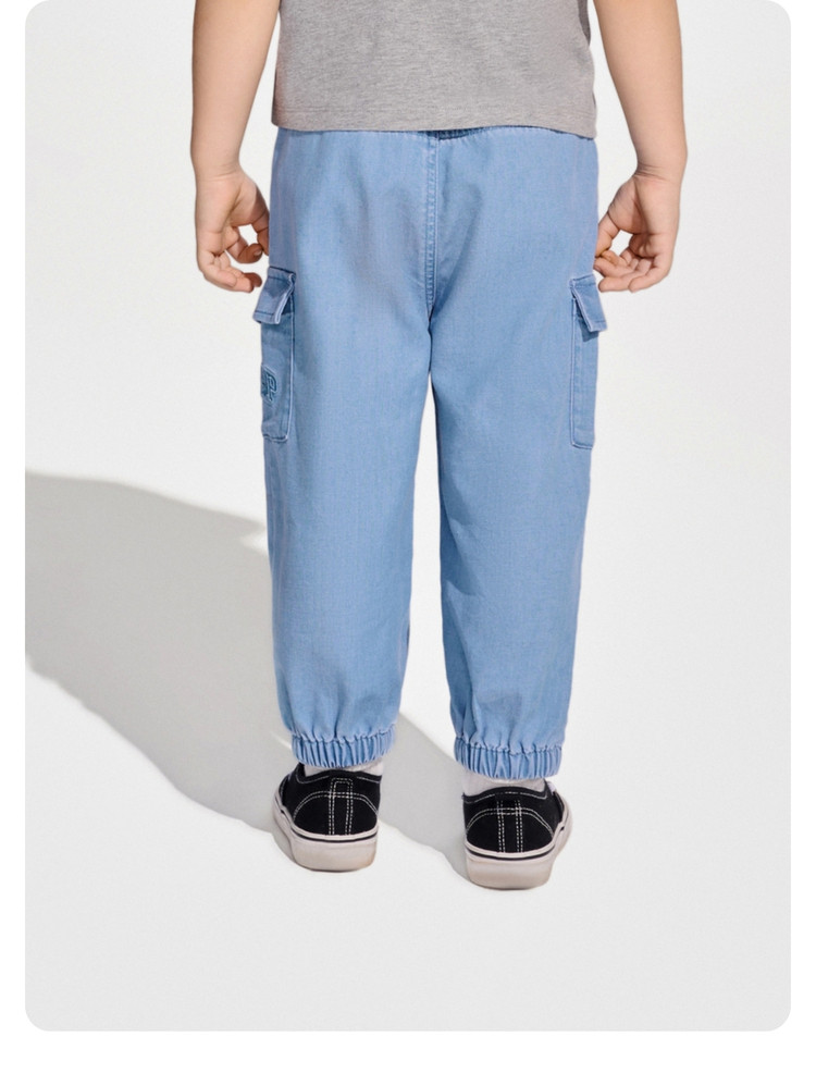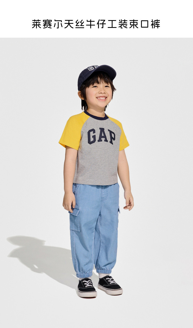 Gap男幼童2024春季款莱赛尔天丝牛仔工装束口裤儿童装890419 416218